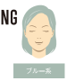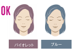 青みのあるピンク、深みのあるバイオレット、ブルーなどツヤっぽく透明感のある髪色が合います。