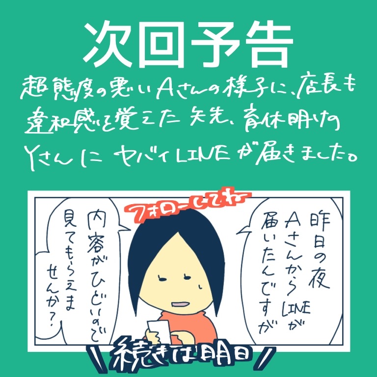 パワハラ先輩に物申す!11【稲漫画】 オリジナル漫画 2022年10月3日 ▼前回のお話はこちら パワハラ先輩に物申す!10【稲漫画】 美容師のアシスタントをしていたフォロワーさんが遭遇したパワハラ先輩の話©稲 次を読む パワハラ先輩に物申す!12【稲漫画】 美容師のアシスタントをしていたフォロワーさんが遭遇したパワハラ先輩の話©稲 稲さんの連載一覧はこちら 毎日更新!サラリーウーマン稲のエッセイ漫画 毎日更新!サラリーウーマン稲のエッセイ漫画 こちらのLovely漫画もおすすめ 「誕生日にはいいことがあるよ」【Lovely漫画】 マッチングアプリで熱烈にアプローチされ知り合った彼。そんな彼は誕生日を気にしてくれるけれど、私にはトラウマがあって…©カンザキミナミ/エピソード:のん 思わせぶりな彼【Lovely漫画】 からかわれてるってわかってるけど…心臓が持ちませんっ!©おはぎ/エピソード:Ree 口コミ8万件以上!当たると評判の電話占い「みん電占い」で好きな人の気持ちを聞いてみた[PR] 「電話占いって当たるの…?」不安な人も多いですよね。電話占いの『みんなの電話占い』は8万件以上の口コミや占い師の先生との実際の会話まで見れる体験談も豊富だから安心です。さらに、Lovelyサイトから登録した方限定で、初回3000円オフクーポンをプレゼント! ライター 稲 エッセイ漫画を描くサラリーウーマン!Instagram【@inasan_mainichi】 目次Related article / 関連記事 オリジナル漫画 メンヘラ彼氏にサヨナラ【Lovely漫画】 ©みんみ 2022年3月29日 オリジナル漫画 年下イケメン彼氏に翻弄されるオンナの毎日#3【Lovely漫画】 ©みんみ 2022年3月29日 オリジナル漫画 2人暮らしのゆる家事日記~気まぐれ旦那の献立作りの巻き~後編【Lovely漫画】 ©みんみ 2022年3月29日 オリジナル漫画 年下イケメン彼氏に翻弄されるオンナの毎日#1【Lovely漫画】 ©みんみ「初めての○○の話 前編」 2022年3月29日 オリジナル漫画 年下イケメン彼氏に翻弄されるオンナの毎日#2【Lovely漫画】 ©みんみ「初めての○○の話 後編」 2022年3月29日 オリジナル漫画 よかったらシェアしてね! URLをコピーしました! URLをコピーしました! 束縛男の恐怖2【Lovely漫画】 あなたは本当に私の知り合い?2【稲漫画】
