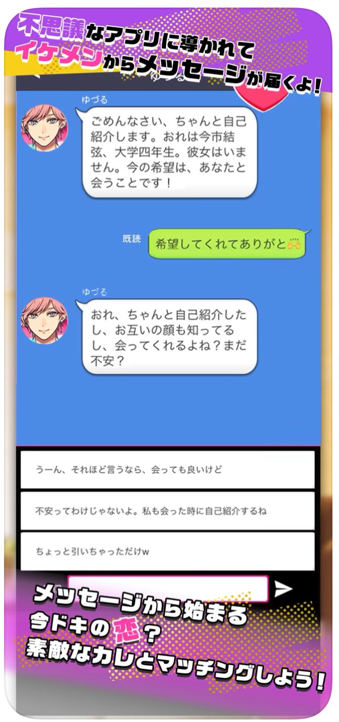 お手軽に楽しむならオススメだと思います。このゲームはあくまでも「無料」なので多少広告があるのは当然だと思いますし、多いと仰ってる方をお見受けしますが他の無料アプリに比べれば少ない方です。広告が嫌なら課金どうぞ。動画や他のゲームの合間でさくっと出来るのが嬉しいですね。返信速度は早めで擬似チャットが楽しめます。個人的にはキャラクターのバリエーション少ないかな……という気もしなくはないですが正統派が好きな方には刺さるかも。時折、メッセージの途中で他のキャラからメールが届くのですが、そのメッセージを開くとアプリが強制終了で落ちてしまうのでそれが残念です。