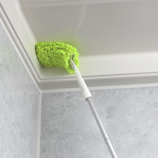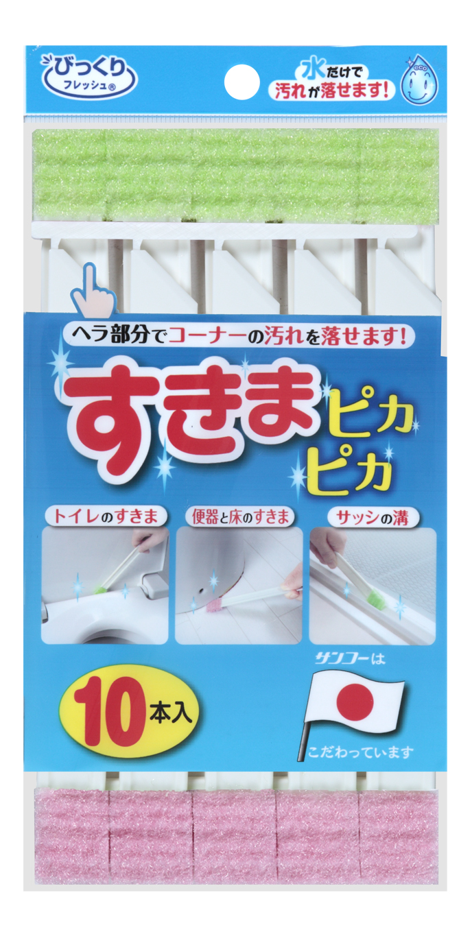 トイレ、浴室、洗面台などの人の手では届かない隙間掃除にぴったりのアイテムです。特殊形状の繊維使用で、洗剤なしでも汚れを落とせます。ブラシ部分だけでなく、ヘラ部分でもこびりついた汚れを落とすことができます。