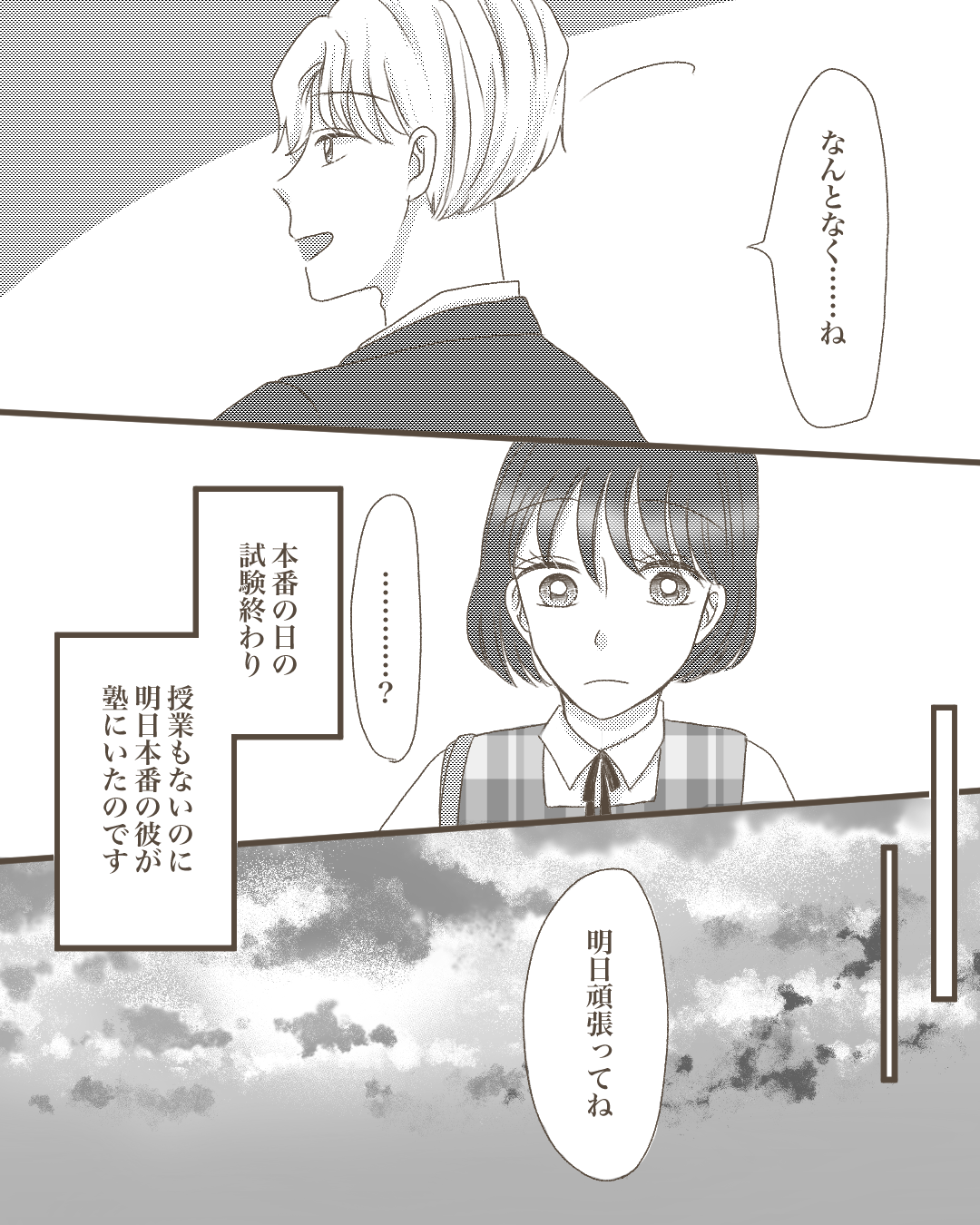 私を支えてくれた彼の言葉【Lovely漫画】 オリジナル漫画 2022年5月24日 目次 こちらのLovely漫画もおすすめ! 両片想い今度は必ず。【Lovely漫画】 恋に疎い私。友人から「私のことを好き」だという同級生がいると聞いてから彼を意識してしまい…©kurumi/エピソード:園川つばさ 彼の言葉で決心した話【Lovely漫画】 高校3年、進路を決めなくてはいけない時期。誰にも相談できず思い切って彼に相談したところ…©れも/エピソード:moon あの頃に戻れたら…【Lovely漫画】 小学生の頃から一緒だった彼が好きで、中学三年生で隣の席になったことからよく話す仲に。さらに受験する高校が一緒で、二人とも合格したら彼に告白しようと決心したけれど…。©みほ/エピソード:さわわ 口コミ8万件以上!当たると評判の電話占い「みん電占い」で好きな人の気持ちを聞いてみた[PR] 「電話占いって当たるの…?」不安な人も多いですよね。電話占いの『みんなの電話占い』は8万件以上の口コミや占い師の先生との実際の会話まで見れる体験談も豊富だから安心です。さらに、Lovelyサイトから登録した方限定で、初回3000円オフクーポンをプレゼント! ライター Lovely編集部 編集部レポや最新情報など皆さんの「知りたい」をお届け!よろしくお願いします♡ Related article / 関連記事 オリジナル漫画 メンヘラ彼氏にサヨナラ【Lovely漫画】 ©みんみ 2022年3月29日 オリジナル漫画 年下イケメン彼氏に翻弄されるオンナの毎日#3【Lovely漫画】 ©みんみ 2022年3月29日 オリジナル漫画 2人暮らしのゆる家事日記~気まぐれ旦那の献立作りの巻き~後編【Lovely漫画】 ©みんみ 2022年3月29日 オリジナル漫画 年下イケメン彼氏に翻弄されるオンナの毎日#1【Lovely漫画】 ©みんみ「初めての○○の話 前編」 2022年3月29日 オリジナル漫画 年下イケメン彼氏に翻弄されるオンナの毎日#2【Lovely漫画】 ©みんみ「初めての○○の話 後編」 2022年3月29日 1 2 オリジナル漫画 よかったらシェアしてね! URLをコピーしました! URLをコピーしました! 保育園の種類って何がある?どの保育園が働きやすい? 【タイプ別取扱説明書】後輩・同僚・上司…職場の人間関係でイライラするときは考え方を変えてみよう!