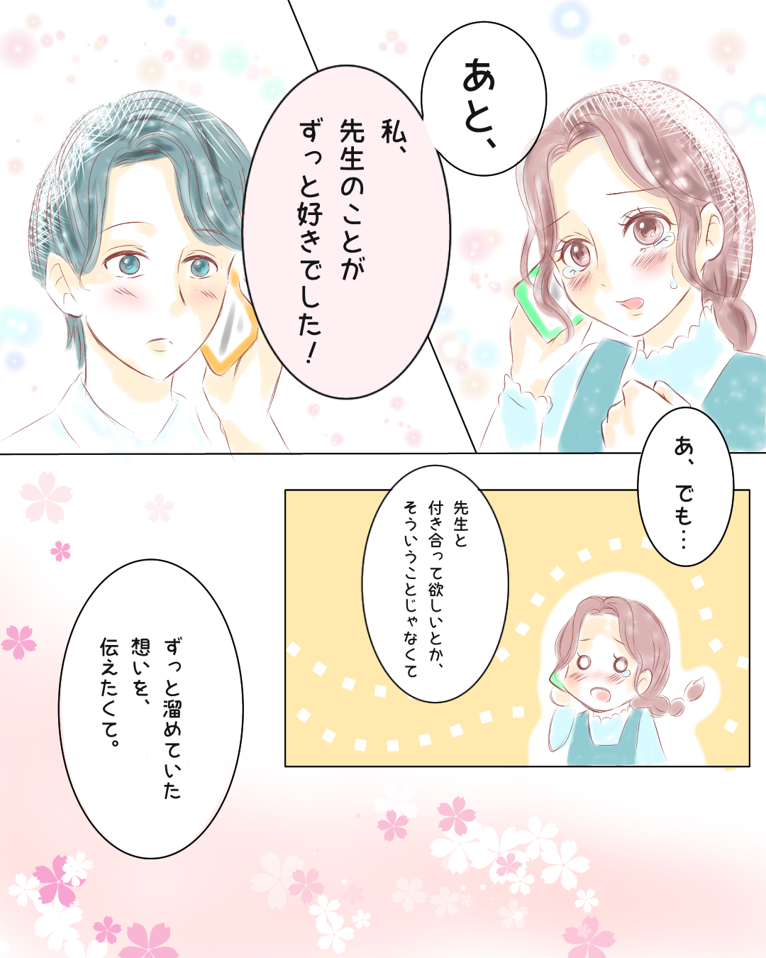 恋した先生に想いを伝えた日【Lovely漫画】 オリジナル漫画 2024年7月1日 目次 おひつじぐもさんの作品をもっと読む! おひつじぐもさんの作品一覧【Lovely漫画】 おひつじぐもさんの作品をおまとめしています! こちらのLovely漫画もおすすめ! 好きでした。【Lovely漫画】 小学生の頃からの初恋。中学校に進んでも仲を縮めるきっかけが見つけられない私が一大決心!©おひつじぐも/エピソード:あき 先生の車【Lovely漫画】 中学1年の頃のできた好きな人は顧問の先生。まわりにはバレないように先生を想っていたある日…©あんころもち/エピソード:さとう 先生に恋してる【Lovely漫画】 中学の英語の先生に恋してる私…♡いつもカッコイイ先生だけど、更に好きになる日が来るとは…。©どんぐり/エピソード:あーちゃん 別れて1か月の元彼から連絡が来た!復縁占いなら「みん電占い」[PR] 彼氏と別れて1か月ー…元彼が忘れられないリサは夢にまで元彼を見る始末…。「これって復縁の前兆では?!」。別れて1か月経ったけど、男性の心理ってどう変化しているの?元彼の気持ちが気になるリサは「みんなの電話占い」で占ってもらい、晴れて復縁に成功! ライター Lovely編集部 編集部レポや最新情報など皆さんの「知りたい」をお届け!よろしくお願いします♡ Related article / 関連記事 オリジナル漫画 メンヘラ彼氏にサヨナラ【Lovely漫画】 ©みんみ 2022年3月29日 オリジナル漫画 年下イケメン彼氏に翻弄されるオンナの毎日#3【Lovely漫画】 ©みんみ 2022年3月29日 オリジナル漫画 2人暮らしのゆる家事日記~気まぐれ旦那の献立作りの巻き~後編【Lovely漫画】 ©みんみ 2022年3月29日 オリジナル漫画 年下イケメン彼氏に翻弄されるオンナの毎日#1【Lovely漫画】 ©みんみ「初めての○○の話 前編」 2022年3月29日 オリジナル漫画 年下イケメン彼氏に翻弄されるオンナの毎日#2【Lovely漫画】 ©みんみ「初めての○○の話 後編」 2022年3月29日 1 2 3 オリジナル漫画 よかったらシェアしてね! URLをコピーしました! URLをコピーしました! 好きになってはいけない人【Lovely漫画】 結婚記念日に両親にあげるプレゼントおすすめランキング10選!