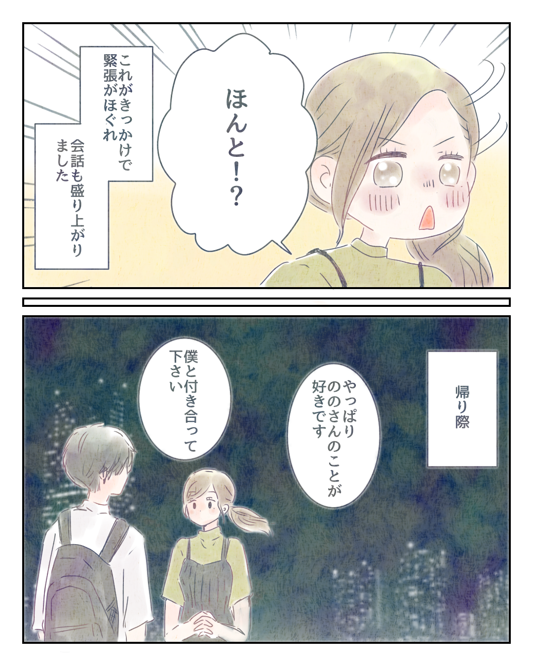 始まりはダーツバーで【Lovely漫画】 オリジナル漫画 2024年12月11日 目次 なぁさんの作品をもっと読む! なぁさんの作品一覧【Lovely漫画】 なぁさんの人気作をおまとめしています! こちらのLovely漫画もおすすめ! 野球で出会った2人【Lovely漫画】 野球部のマネージャーをしていた私。高校を卒業してからも定期的に来ていたOBの先輩と次第に仲良くなり…©なぁ/エピソード:匿名 台湾人の彼との出会い【Lovely漫画】 台湾からの留学生ヂーミンはサークル友達。彼から食事に誘われたけれど、私には別の彼がいて…©ten/エピソード:ほてぃ 出会いはSNSで【Lovely漫画】 SNSを通じて知り合った同じ大学の先輩。徐々に関係を深めていくものの、友達なのか彼女候補と見られているのか確信が持てず・・・ ©はにぃ/エピソード:うさぎ それはオリエンテーションから【Lovely漫画】 入学から1か月後のある日、クラスメイトから名前を聞かれた。これが始まりだと思ってた…©kurumi/エピソード:匿名 ライター Lovely編集部 編集部レポや最新情報など皆さんの「知りたい」をお届け!よろしくお願いします♡ Related article / 関連記事 オリジナル漫画 メンヘラ彼氏にサヨナラ【Lovely漫画】 ©みんみ 2022年3月29日 オリジナル漫画 年下イケメン彼氏に翻弄されるオンナの毎日#3【Lovely漫画】 ©みんみ 2022年3月29日 オリジナル漫画 2人暮らしのゆる家事日記~気まぐれ旦那の献立作りの巻き~後編【Lovely漫画】 ©みんみ 2022年3月29日 オリジナル漫画 年下イケメン彼氏に翻弄されるオンナの毎日#1【Lovely漫画】 ©みんみ「初めての○○の話 前編」 2022年3月29日 オリジナル漫画 年下イケメン彼氏に翻弄されるオンナの毎日#2【Lovely漫画】 ©みんみ「初めての○○の話 後編」 2022年3月29日 1 2 オリジナル漫画 よかったらシェアしてね! URLをコピーしました! URLをコピーしました! 私への扱いだけ雑なママ友18【稲漫画】 LINEでそっけない返信・態度の男性心理とその対処法解説!