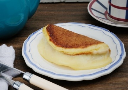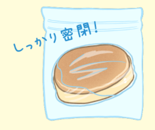 電子レンジで解凍した後にアルミホイルをかけてオーブントースターの弱火で温めなおすか、フライパンを弱火にかけて焼きなおすと、周りがカリッと、中がフワッと仕上がりに!
