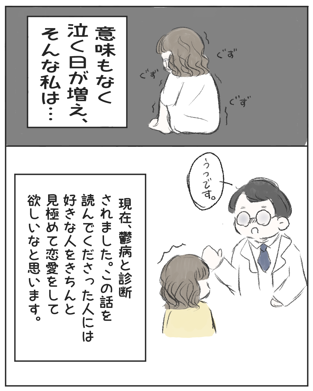 嘘をつく理由【Lovely漫画】 オリジナル漫画 2024年10月17日 目次 kowariさんの作品をもっと読む! kowariさんの作品一覧【Lovely漫画】 kowariさんの作品をおまとめしています! こちらのLovely漫画もおすすめ! 叶わなかった恋【Lovely漫画】 仲の良い友達と帰りながら王様ゲームをしていたら、自分の好きな人を言わなきゃいけないことに。そのなかに、好きな人がいる私は…©kowari/エピソード:匿名 忘れられない受験期【Lovely漫画】 中学一年生の時に好きになり、仲良くなった彼と二年生では違うクラスに。落ち込む中、修学旅行で奇跡が起こり…?©サクライ/エピソード:匿名 素敵な元彼【Lovely漫画】 ケンカが多くて別れた彼…©フジコ/エピソード:ゆり 別れて1か月の元彼から連絡が来た!復縁占いなら「みん電占い」[PR] 彼氏と別れて1か月ー…元彼が忘れられないリサは夢にまで元彼を見る始末…。「これって復縁の前兆では?!」。別れて1か月経ったけど、男性の心理ってどう変化しているの?元彼の気持ちが気になるリサは「みんなの電話占い」で占ってもらい、晴れて復縁に成功! ライター Lovely編集部 編集部レポや最新情報など皆さんの「知りたい」をお届け!よろしくお願いします♡ Related article / 関連記事 オリジナル漫画 メンヘラ彼氏にサヨナラ【Lovely漫画】 ©みんみ 2022年3月29日 オリジナル漫画 年下イケメン彼氏に翻弄されるオンナの毎日#3【Lovely漫画】 ©みんみ 2022年3月29日 オリジナル漫画 2人暮らしのゆる家事日記~気まぐれ旦那の献立作りの巻き~後編【Lovely漫画】 ©みんみ 2022年3月29日 オリジナル漫画 年下イケメン彼氏に翻弄されるオンナの毎日#1【Lovely漫画】 ©みんみ「初めての○○の話 前編」 2022年3月29日 オリジナル漫画 年下イケメン彼氏に翻弄されるオンナの毎日#2【Lovely漫画】 ©みんみ「初めての○○の話 後編」 2022年3月29日 1 2 オリジナル漫画 よかったらシェアしてね! URLをコピーしました! URLをコピーしました! ヤベェ同期に困ってます!!35【稲漫画】 ダークブラウンのヘアカラーがおしゃれ!【上品な髪色】
