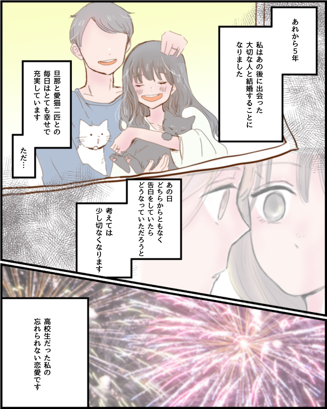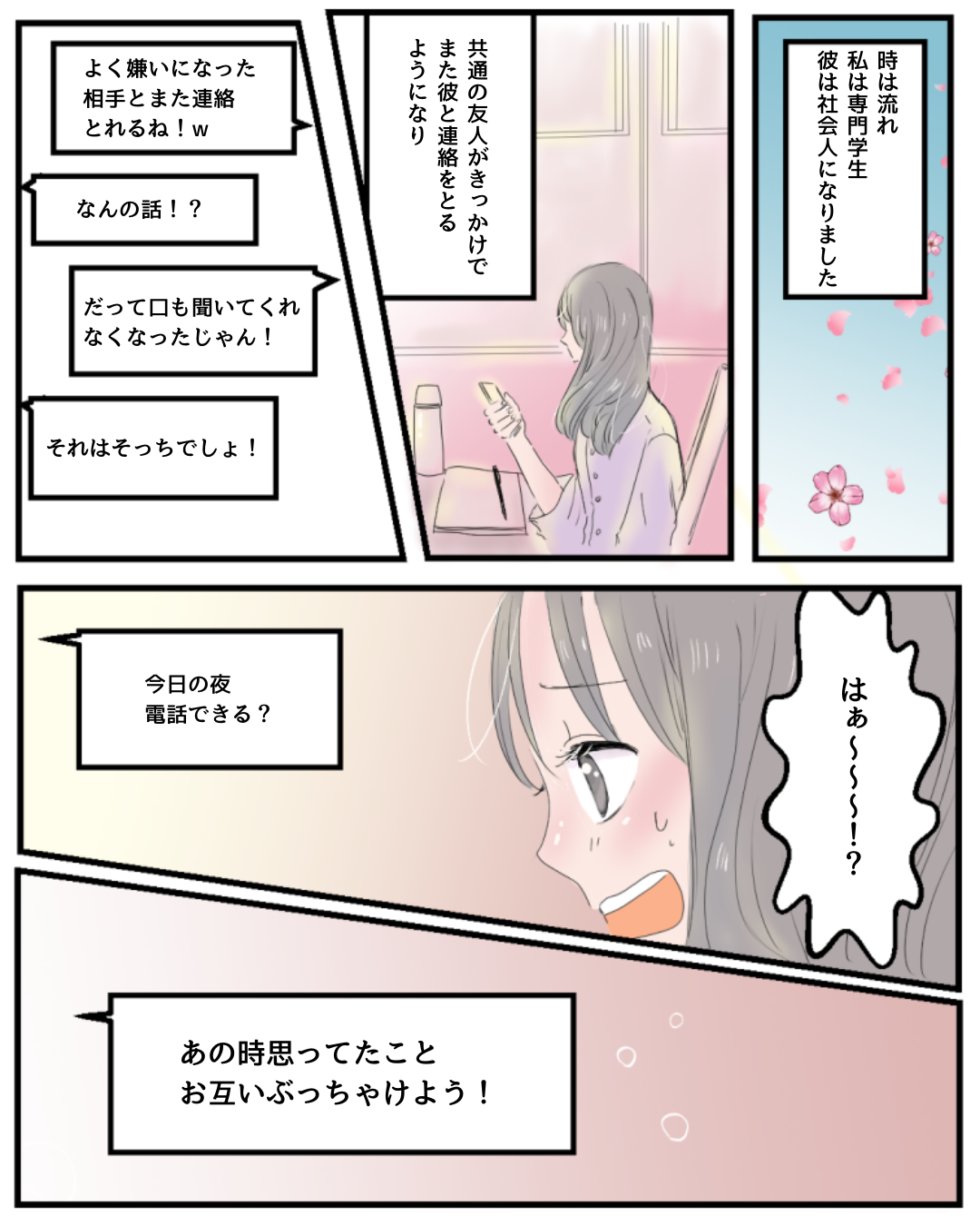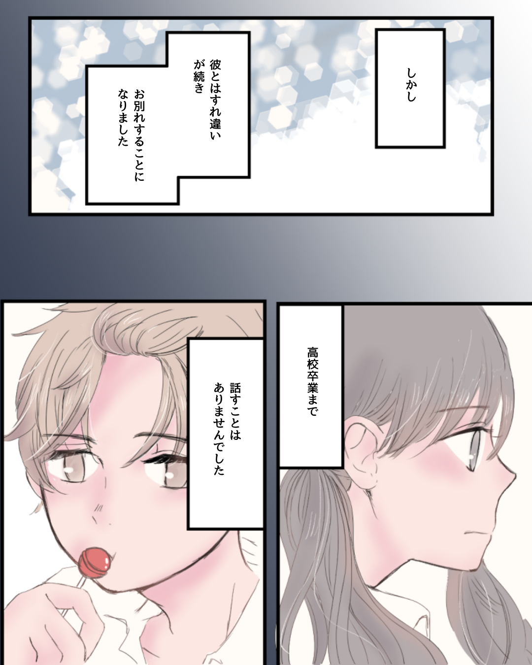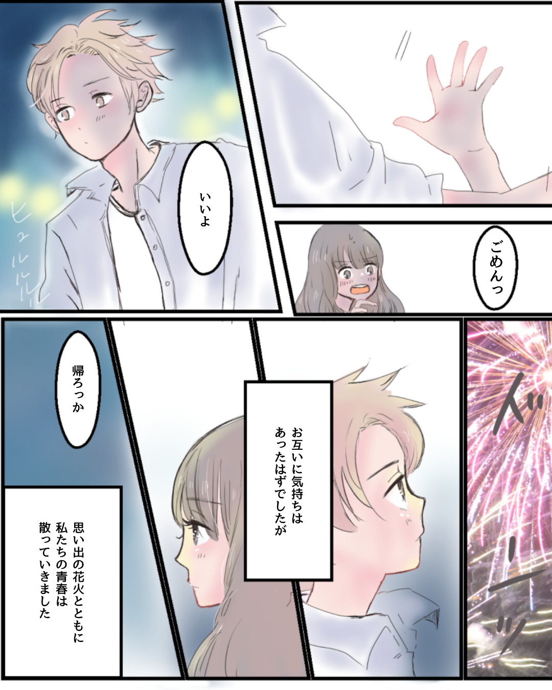 花火とともに散った青春【Lovely漫画】 オリジナル漫画 2024年11月22日 目次 なぁさんの作品をもっと読む! なぁさんの作品一覧【Lovely漫画】 なぁさんの人気作をおまとめしています! こちらのLovely漫画もおすすめ! 中学生の切ない恋【Lovely漫画】 中学1年で出会った彼に片思い。席が近い彼と次第に仲良くなっていき…©なぁ/エピソード:あー 叶わなかった恋【Lovely漫画】 仲の良い友達と帰りながら王様ゲームをしていたら、自分の好きな人を言わなきゃいけないことに。そのなかに、好きな人がいる私は…©kowari/エピソード:匿名 両片想い【Lovely漫画】 進路のことで先生と衝突したときに声をかけてくれた彼。励ましてくれたことがきっかけで彼が気になるけれどシャイな私はなかなかアプローチできず…©味醂子。/エピソード:もも 既婚者男性が職場で好きな女性にとる態度って?不倫の相談なら「みん電占い」[PR] 好きな人が既婚者で、恋愛の相談が誰にもできない…、既婚男性が職場で好きな女性にとる態度や気持ちが知りたい、そんな方には「みんなの電話占い」がおすすめ!8万件以上の口コミや占い師の先生との実際の会話まで見れる体験談も豊富で安心。さらに、Lovelyサイトから登録した方限定で、初回3000円オフクーポンをプレゼント! ライター Lovely編集部 編集部レポや最新情報など皆さんの「知りたい」をお届け!よろしくお願いします♡ Related article / 関連記事 オリジナル漫画 メンヘラ彼氏にサヨナラ【Lovely漫画】 ©みんみ 2022年3月29日 オリジナル漫画 年下イケメン彼氏に翻弄されるオンナの毎日#3【Lovely漫画】 ©みんみ 2022年3月29日 オリジナル漫画 2人暮らしのゆる家事日記~気まぐれ旦那の献立作りの巻き~後編【Lovely漫画】 ©みんみ 2022年3月29日 オリジナル漫画 年下イケメン彼氏に翻弄されるオンナの毎日#1【Lovely漫画】 ©みんみ「初めての○○の話 前編」 2022年3月29日 オリジナル漫画 年下イケメン彼氏に翻弄されるオンナの毎日#2【Lovely漫画】 ©みんみ「初めての○○の話 後編」 2022年3月29日 1 2 オリジナル漫画 よかったらシェアしてね! URLをコピーしました! URLをコピーしました! 私だって告白されたい!!【Lovely漫画】 赤ちゃんにおすすめの音楽&動画TOP30!発育から寝かしつけソングまで!