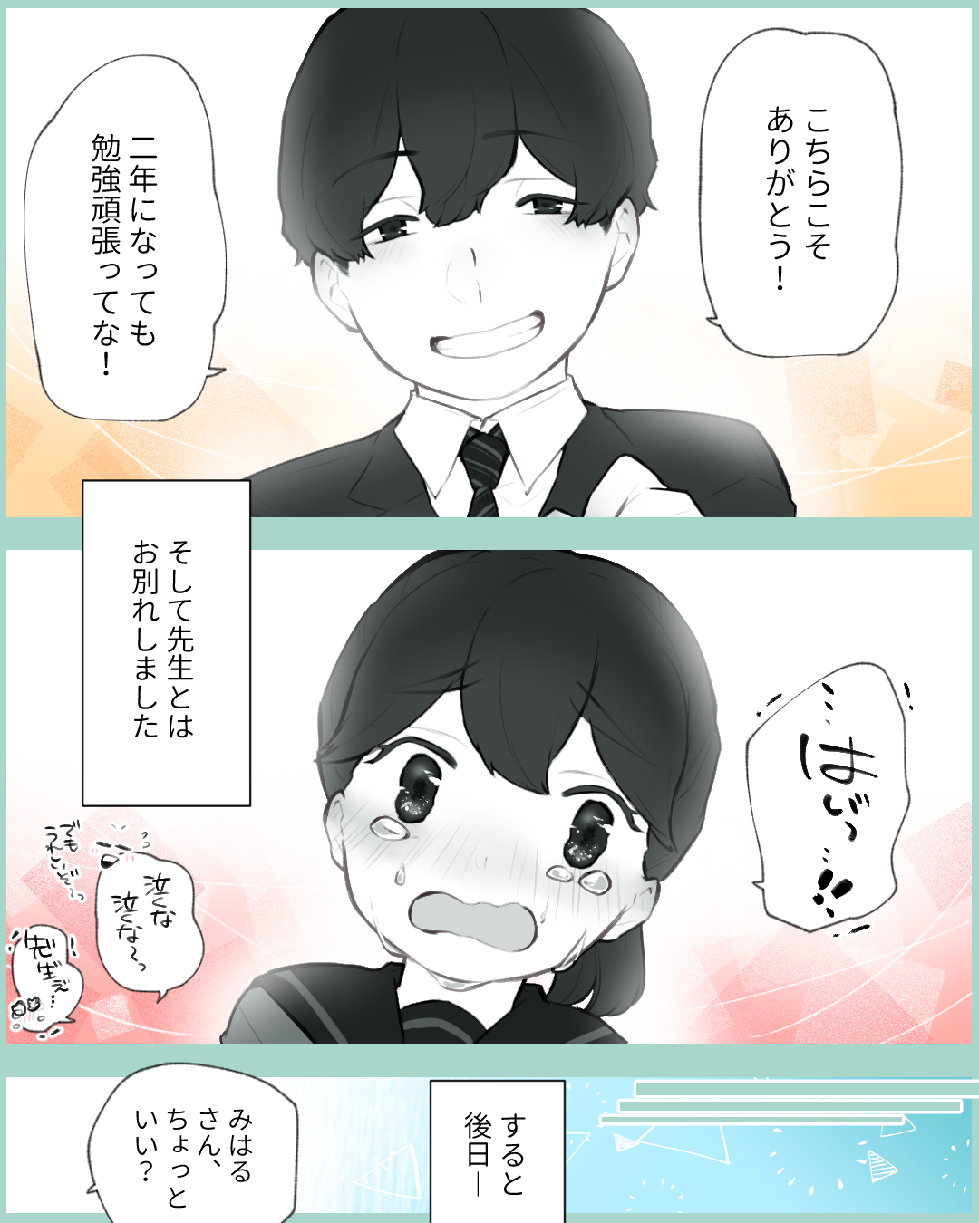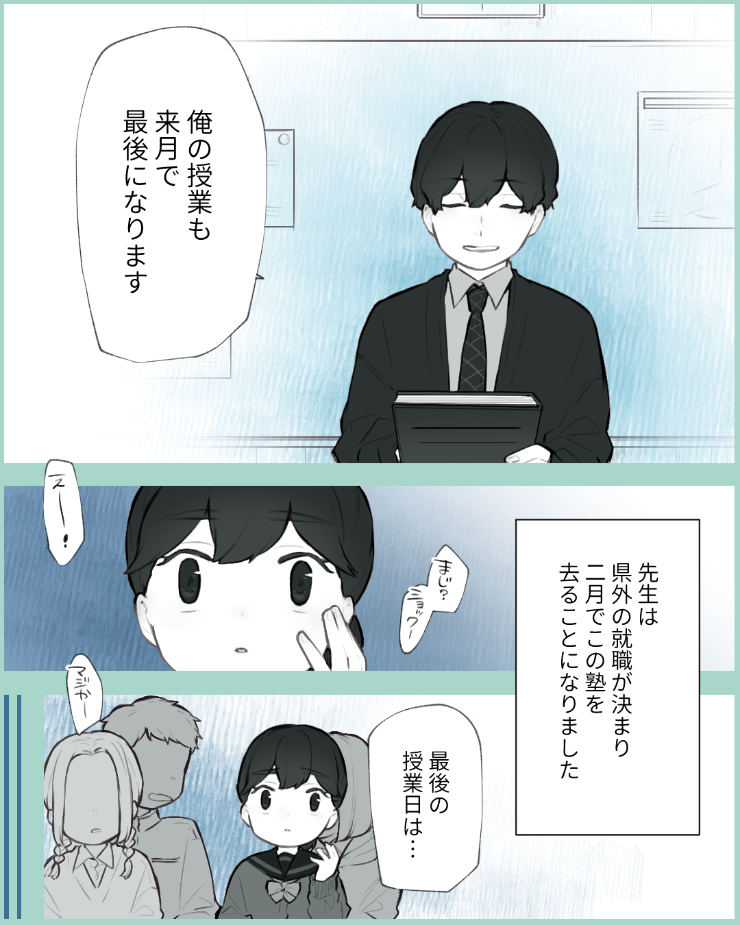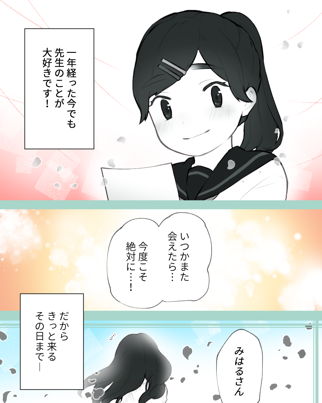 先生に片思いした話【Lovely漫画】 オリジナル漫画 2024年10月18日 目次 倖さんの作品をもっと読む! 倖さんの作品一覧【Lovely漫画】 倖さんの人気作をおまとめしています! こちらのLovely漫画もおすすめ! 先輩、気付いて…!【Lovely漫画】 吹奏楽部に所属する私は同じ楽器を担当している先輩に恋しています♡©倖/エピソード:あん 恋した先生に想いを伝えた日【Lovely漫画】 中学二年生の時から塾の先生に恋していた私。諸事情で塾を辞めた後も先生への想いは引きずったままで…©おひつじぐも/エピソード:さくらんぼロゼ 先生との恋【Lovely漫画】 他のクラスの理科の先生がどんどん好きになり、気持ちが抑えられなくなって告白!その答えは…?©サクライ/エピソード:あや 口コミ8万件以上!当たると評判の電話占い「みん電占い」で好きな人の気持ちを聞いてみた[PR] 「電話占いって当たるの…?」不安な人も多いですよね。電話占いの『みんなの電話占い』は8万件以上の口コミや占い師の先生との実際の会話まで見れる体験談も豊富だから安心です。さらに、Lovelyサイトから登録した方限定で、初回3000円オフクーポンをプレゼント! ライター Lovely編集部 編集部レポや最新情報など皆さんの「知りたい」をお届け!よろしくお願いします♡ Related article / 関連記事 オリジナル漫画 メンヘラ彼氏にサヨナラ【Lovely漫画】 ©みんみ 2022年3月29日 オリジナル漫画 年下イケメン彼氏に翻弄されるオンナの毎日#3【Lovely漫画】 ©みんみ 2022年3月29日 オリジナル漫画 2人暮らしのゆる家事日記~気まぐれ旦那の献立作りの巻き~後編【Lovely漫画】 ©みんみ 2022年3月29日 オリジナル漫画 年下イケメン彼氏に翻弄されるオンナの毎日#1【Lovely漫画】 ©みんみ「初めての○○の話 前編」 2022年3月29日 オリジナル漫画 年下イケメン彼氏に翻弄されるオンナの毎日#2【Lovely漫画】 ©みんみ「初めての○○の話 後編」 2022年3月29日 1 2 オリジナル漫画 よかったらシェアしてね! URLをコピーしました! URLをコピーしました! 遠回りした二人の恋【Lovely漫画】 香水おすすめレディース人気ランキング23選!【年代別に紹介】
