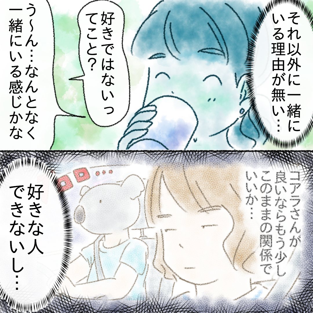 好きじゃない人と結婚した私の末路14【コメダ漫画】 オリジナル漫画 2022年6月28日 ▼前回のお話はこちら 好きじゃない人と結婚した私の末路13【コメダ漫画】 人を好きになれない私が好きじゃない人と結婚するまでの物語©コメダ 続きはこちら 好きじゃない人と結婚した私の末路15【コメダ漫画】 人を好きになれない私が好きじゃない人と結婚するまでの物語©コメダ コメダさんのInstagramはこちら @komey3442 こちらのLovely漫画もおすすめ 見えない地獄0【ガマ太郎漫画】 本当にあった知人の怖い話©ガマ太郎 私の家の扉を叩くのは誰1【稲漫画】 フォロワーさんが学生時代、一人暮らしをしていた時の恐怖体験とは…?©稲 別れて1か月の元彼から連絡が来た!復縁占いなら「みん電占い」[PR] 彼氏と別れて1か月ー…元彼が忘れられないリサは夢にまで元彼を見る始末…。「これって復縁の前兆では?!」。別れて1か月経ったけど、男性の心理ってどう変化しているの?元彼の気持ちが気になるリサは「みんなの電話占い」で占ってもらい、晴れて復縁に成功! ライター コメダ 結婚は人生の墓場 目次Related article / 関連記事 オリジナル漫画 メンヘラ彼氏にサヨナラ【Lovely漫画】 ©みんみ 2022年3月29日 オリジナル漫画 年下イケメン彼氏に翻弄されるオンナの毎日#3【Lovely漫画】 ©みんみ 2022年3月29日 オリジナル漫画 2人暮らしのゆる家事日記~気まぐれ旦那の献立作りの巻き~後編【Lovely漫画】 ©みんみ 2022年3月29日 オリジナル漫画 年下イケメン彼氏に翻弄されるオンナの毎日#1【Lovely漫画】 ©みんみ「初めての○○の話 前編」 2022年3月29日 オリジナル漫画 年下イケメン彼氏に翻弄されるオンナの毎日#2【Lovely漫画】 ©みんみ「初めての○○の話 後編」 2022年3月29日 オリジナル漫画 よかったらシェアしてね! URLをコピーしました! URLをコピーしました! 大好きなクラス【Lovely漫画】 天活!!7
