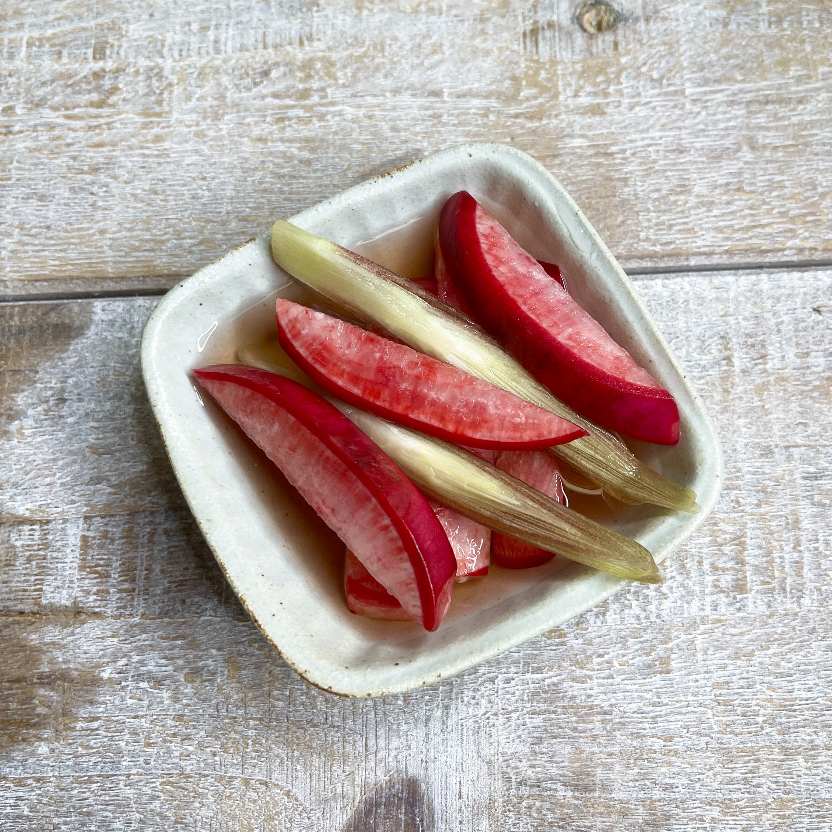 白だしに少しお酢を入れたものに、カラフルな大根やピクルス、にんじんなどを入れ、10分以上漬け込むだけで完成です!
