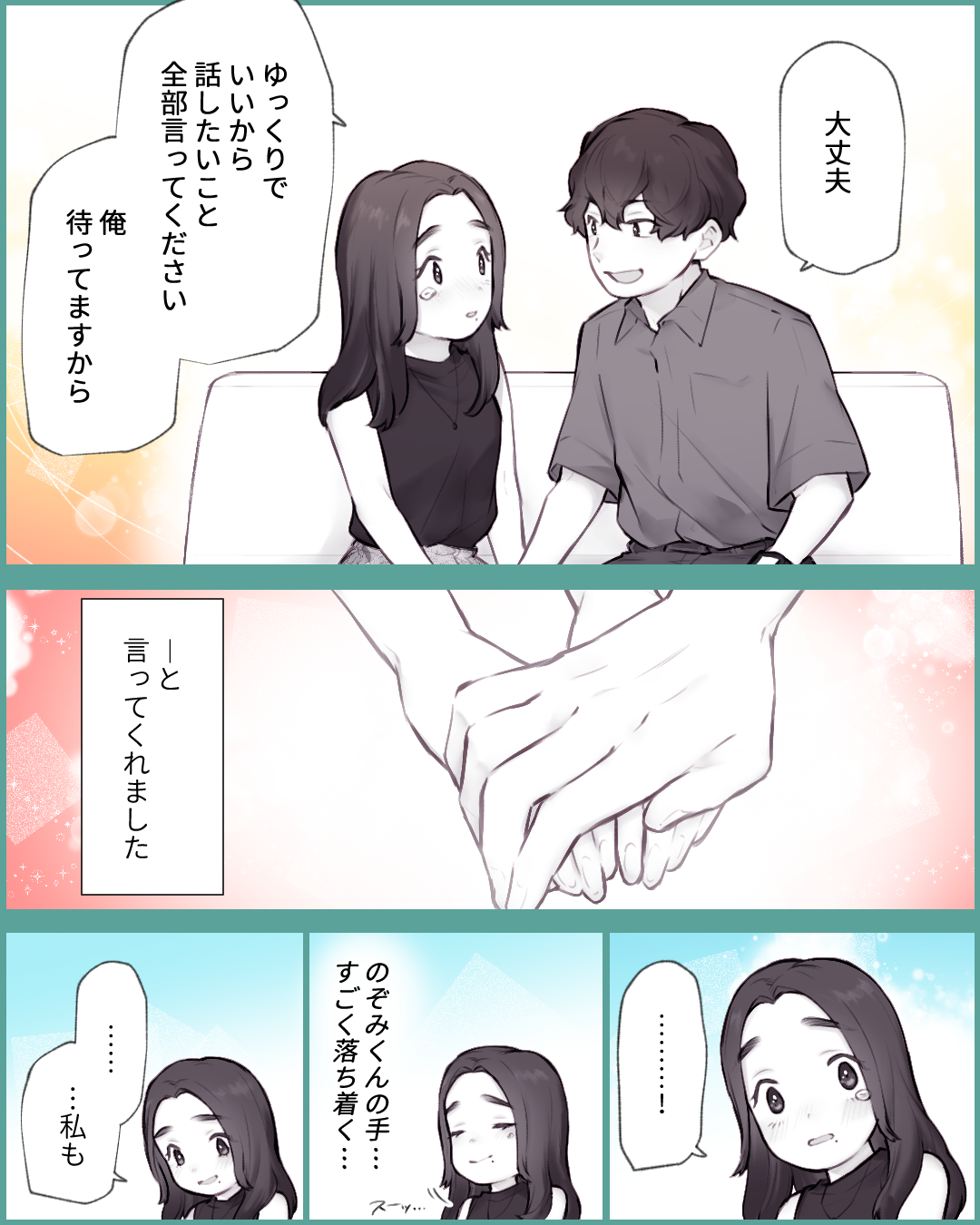 アプリから始まった恋愛【Lovely漫画】 オリジナル漫画 2024年10月11日 目次 倖さんの作品をもっと読む! 倖さんの作品一覧【Lovely漫画】 倖さんの人気作をおまとめしています! こちらのLovely漫画もおすすめ! 年下くん【Lovely漫画】 年下の彼に片思い。2年の期間を経て告白したら…©倖/エピソード:なお 「誕生日にはいいことがあるよ」【Lovely漫画】 マッチングアプリで熱烈にアプローチされ知り合った彼。そんな彼は誕生日を気にしてくれるけれど、私にはトラウマがあって…©カンザキミナミ/エピソード:のん 運命の人…?【Lovely漫画】 モラハラでDVの元彼と別れ、友達の勧めで登録したマッチングアプリ。メッセージのやり取りだけで満足していた私だったけど、ある日…©どんぐり/エピソード:椿 別れて1か月の元彼から連絡が来た!復縁占いなら「みん電占い」[PR] 彼氏と別れて1か月ー…元彼が忘れられないリサは夢にまで元彼を見る始末…。「これって復縁の前兆では?!」。別れて1か月経ったけど、男性の心理ってどう変化しているの?元彼の気持ちが気になるリサは「みんなの電話占い」で占ってもらい、晴れて復縁に成功! ライター Lovely編集部 編集部レポや最新情報など皆さんの「知りたい」をお届け!よろしくお願いします♡ Related article / 関連記事 オリジナル漫画 メンヘラ彼氏にサヨナラ【Lovely漫画】 ©みんみ 2022年3月29日 オリジナル漫画 年下イケメン彼氏に翻弄されるオンナの毎日#3【Lovely漫画】 ©みんみ 2022年3月29日 オリジナル漫画 2人暮らしのゆる家事日記~気まぐれ旦那の献立作りの巻き~後編【Lovely漫画】 ©みんみ 2022年3月29日 オリジナル漫画 年下イケメン彼氏に翻弄されるオンナの毎日#1【Lovely漫画】 ©みんみ「初めての○○の話 前編」 2022年3月29日 オリジナル漫画 年下イケメン彼氏に翻弄されるオンナの毎日#2【Lovely漫画】 ©みんみ「初めての○○の話 後編」 2022年3月29日 1 2 オリジナル漫画 よかったらシェアしてね! URLをコピーしました! URLをコピーしました! 最高のドライブ【Lovely漫画】 縮毛矯正はどれくらいの期間ですべき?髪の長さ別に頻度を解説!