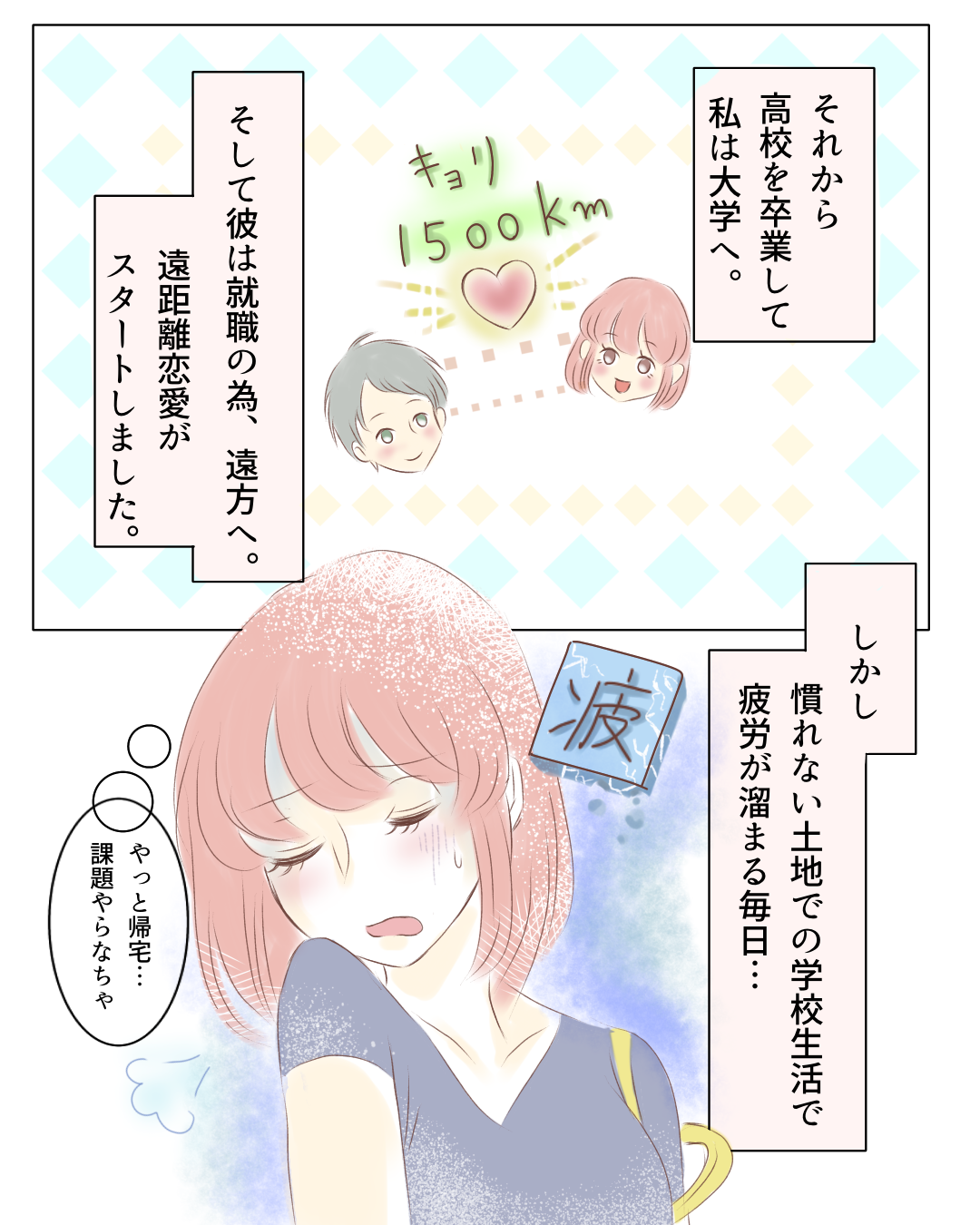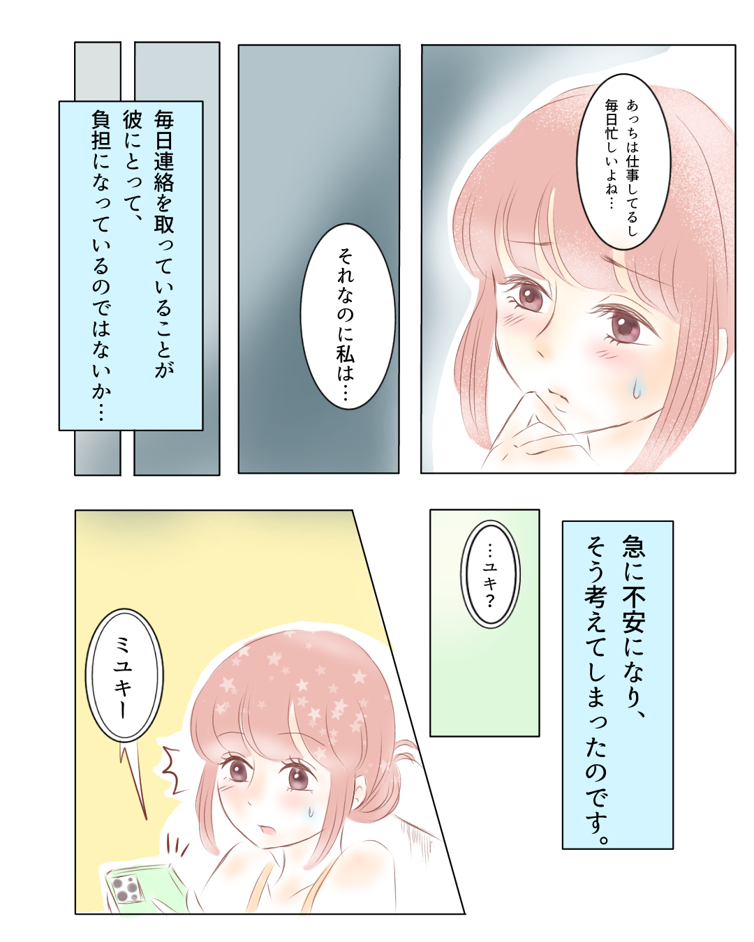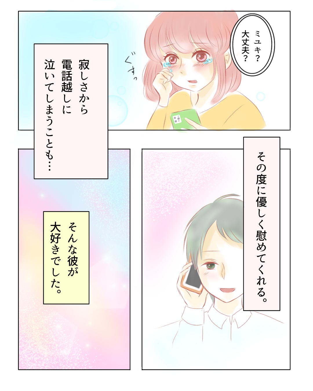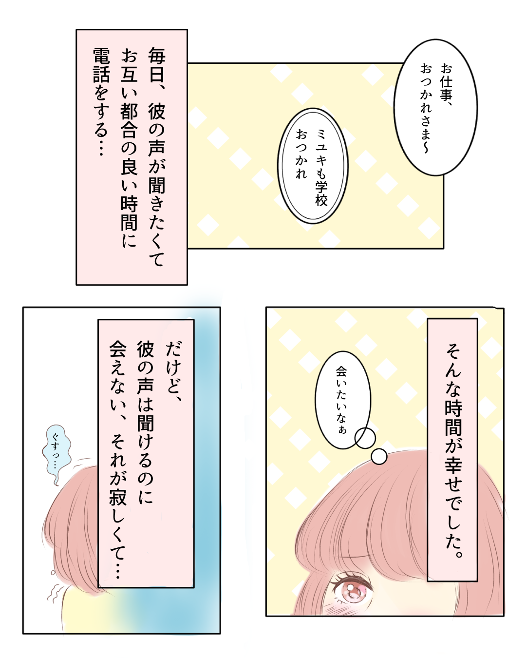 遠距離恋愛のカタチ【Lovely漫画】 オリジナル漫画 2024年12月27日 目次Related article / 関連記事 遠距離 婚約ミサンガ【Lovely漫画】 彼が沖縄のおみやげをたくさん買ってきてくれた。その中にはミサンガも。すると彼が突然驚きの言葉を!?©しのだちかこ/エピソー… 2024年11月25日 遠距離 夜の電話【Lovely漫画】 年上彼氏と中距離恋愛中の私。毎晩の電話が日課になっています。ところが、今日の電話は彼の返事が素っ気なくて…。©なつ/エピソ… 2024年8月1日 遠距離 ポケットからキュンです♡【Lovely漫画】 遠距離の彼が精一杯気持ちを伝えてくれました♡©kurumi/エピソード:ちっち 2024年10月3日 遠距離 好きな人が出来たことが無い彼を好きにさせた話【Lovely漫画】 私が好きになったバイト先の店長は、「好き」という気持ちが分からない人で…。でも絶対に振り向かせてみせる!©しのだちかこ/エ… 2025年2月12日 遠距離 包容力のある彼氏が神だった件【Lovely漫画】 女の子の日の彼氏の対応に涙…♡©倖/エピソード:ももち 2024年10月4日 遠距離 6年前の恋に落ちた日【Lovely漫画】 丁寧なミシン作業の彼に惹かれて恋をした©ぴまを/エピソード:イチハ 2025年1月14日 遠距離 同期との運命の出会い【Lovely漫画】 研修で一緒になった同期に一目惚れした私。特に進展もなく迎えた研修最終日、彼から食事に誘われて…。©マナミン/エピソード:ゆ… 2024年8月6日 遠距離 寝落ち通話で素敵な夜を【Lovely漫画】 私の日課は、遠距離恋愛中の彼との寝落ち通話です。ある日、先に寝てしまった彼との通話を繋げたままにしていたら、予想外の展開に… 2024年8月5日 遠距離 遠距離中の彼との記念日旅行で…【Lovely漫画】 記念日旅行で、彼が不思議なゲームを提案してきて…?©しのだちかこ/エピソード:このは 2024年10月10日 遠距離 リモキュン【Lovely漫画】 遠距離だから会えないのに、リモートでさえもドキッとさせてくれる彼に惚れ直しちゃった!©おはぎ/エピソード:匿名 2022年3月29日 遠距離 中距離恋愛中の彼氏との誕生日【Lovely漫画】 埼玉と神奈川で中距離恋愛をしている私たち。週に1回の会える時間が楽しみだったのに、誕生日は彼が忙しいから会えないって…寂し… 2024年9月6日 遠距離 遠距離の覚悟【Lovely漫画】 高校で遠距離恋愛になった私たち。覚悟はしていたものの寂しくて、彼との電話中に涙が止まらなくなってしまったら…©倖/エピソー… 2024年12月20日 遠距離 私の決意【Lovely漫画】 東京と福岡で遠距離恋愛をしている私たち。ほんとはどんな時も一緒に居たいけど、こんな世の中でさらに会うのが難しくなった…。だ… 2024年9月20日 オリジナル漫画 出会いはフェリーで【Lovely漫画】 友達に会いに行くために乗った夜行フェリー。乗船前に見かけたイケメンも一緒に乗ってることがわかりドキドキ。また会えたらいいな… 2024年12月13日 遠距離 失敗した嫉妬【Lovely漫画】 チャットアプリで知り合った10歳年の差がある彼。いつも女友達と一緒の写真をいつも私に送ってくるのはなぜ…!?©サクライ/エ… 2024年8月16日 遠距離 長年の片想いに勝利した恋【Lovely漫画】 「重い。ゲームの邪魔になる」と振られた彼が忘れられなくて、彼との思い出を投稿エピソードにして気持ちを整理していた時。同い年… 2024年9月18日 遠距離 嬉し涙って出るんだ【Lovely漫画】 遠距離恋愛中の彼氏ともうすぐ付き合って1年の記念日。記念日には大好きなテーマパークに行こうねって約束をしていた…©おひつじ… 2022年3月29日 遠距離 思いがけないサプライズ【Lovely漫画】 東京と熊本で4歳年上の彼と遠距離恋愛中の私。5か月間会えない寂しさに少し負けそうになっていました。©れも/エピソード:みさ… 2025年2月4日 遠距離 不意打ちのやさしさ【Lovely漫画】 神戸と福岡で遠距離恋愛中の私たち。ある日、電話で彼と話をしていると…©しのだちかこ/エピソード:mim 2025年1月17日 遠距離 私たちの出会ったハワイ【Lovely漫画】 留学先で出会った彼。お互い惹かれ合い、付き合うことになったけれど…©どんぐり/エピソード:まる 2024年10月18日 1 2 オリジナル漫画 よかったらシェアしてね! URLをコピーしました! URLをコピーしました! どういう意味!?【Lovely漫画】 年上彼氏の可愛いところ【Lovely漫画】