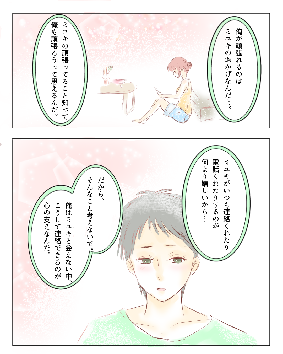 遠距離恋愛のカタチ【Lovely漫画】 オリジナル漫画 2024年12月27日 目次 おひつじぐもさんの作品をもっと読む! おひつじぐもさんの作品一覧【Lovely漫画】 おひつじぐもさんの作品をおまとめしています! こちらのLovely漫画もおすすめ! 運命を変えたインスタストーリーズ【Lovely漫画】 学校で有名な憧れの先輩。ある日、クラスメートのインスタストーリーズを見るとその先輩がタグ付けされていて…©おひつじぐも/エピソード:RAM 幸せな遠距離恋愛【Lovely漫画】 遠距離恋愛中の大学生。付き合って1年の記念日だけど、就活中で忙しい彼には直接会えないと思っていました…©倖/エピソード:匿名 超遠距離恋愛【Lovely漫画】 外国語勉強を目的としたアプリで知り合ったのは、海外在住の彼。親切で、愛情をストレートに伝えてくれて…。会った事はまだないけれど、私たちは付き合う事に♡そして1年後、彼の住む国へ…!©なたでこ子/エピソード:めぐみ 連絡が途絶えて一ヶ月…彼の気持ちが知りたい!そんな時は復縁・縁結びに強い「電話占いカリス」へ[PR] 彼から距離を置きたいと告げられ連絡も途絶えた。ずっと待ってはみたものの、そろそろ解決の糸口が欲しい…!そんな方には復縁・縁結びに強い「電話占いカリス」がおすすめ!合格率わずか5%以下の厳選された占い師が、24時間体制であなたを幸せへと導くお手伝いをしてくれます。「当たる」占い師の力、少し借りてみませんか? ライター Lovely編集部 編集部レポや最新情報など皆さんの「知りたい」をお届け!よろしくお願いします♡ Related article / 関連記事 遠距離 婚約ミサンガ【Lovely漫画】 彼が沖縄のおみやげをたくさん買ってきてくれた。その中にはミサンガも。すると彼が突然驚きの言葉を!?©しのだちかこ/エピソー… 2024年11月25日 遠距離 夜の電話【Lovely漫画】 年上彼氏と中距離恋愛中の私。毎晩の電話が日課になっています。ところが、今日の電話は彼の返事が素っ気なくて…。©なつ/エピソ… 2024年8月1日 遠距離 ポケットからキュンです♡【Lovely漫画】 遠距離の彼が精一杯気持ちを伝えてくれました♡©kurumi/エピソード:ちっち 2024年10月3日 遠距離 好きな人が出来たことが無い彼を好きにさせた話【Lovely漫画】 私が好きになったバイト先の店長は、「好き」という気持ちが分からない人で…。でも絶対に振り向かせてみせる!©しのだちかこ/エ… 2025年2月12日 遠距離 包容力のある彼氏が神だった件【Lovely漫画】 女の子の日の彼氏の対応に涙…♡©倖/エピソード:ももち 2024年10月4日 遠距離 6年前の恋に落ちた日【Lovely漫画】 丁寧なミシン作業の彼に惹かれて恋をした©ぴまを/エピソード:イチハ 2025年1月14日 遠距離 同期との運命の出会い【Lovely漫画】 研修で一緒になった同期に一目惚れした私。特に進展もなく迎えた研修最終日、彼から食事に誘われて…。©マナミン/エピソード:ゆ… 2024年8月6日 遠距離 寝落ち通話で素敵な夜を【Lovely漫画】 私の日課は、遠距離恋愛中の彼との寝落ち通話です。ある日、先に寝てしまった彼との通話を繋げたままにしていたら、予想外の展開に… 2024年8月5日 遠距離 遠距離中の彼との記念日旅行で…【Lovely漫画】 記念日旅行で、彼が不思議なゲームを提案してきて…?©しのだちかこ/エピソード:このは 2024年10月10日 遠距離 リモキュン【Lovely漫画】 遠距離だから会えないのに、リモートでさえもドキッとさせてくれる彼に惚れ直しちゃった!©おはぎ/エピソード:匿名 2022年3月29日 遠距離 中距離恋愛中の彼氏との誕生日【Lovely漫画】 埼玉と神奈川で中距離恋愛をしている私たち。週に1回の会える時間が楽しみだったのに、誕生日は彼が忙しいから会えないって…寂し… 2024年9月6日 遠距離 遠距離の覚悟【Lovely漫画】 高校で遠距離恋愛になった私たち。覚悟はしていたものの寂しくて、彼との電話中に涙が止まらなくなってしまったら…©倖/エピソー… 2024年12月20日 遠距離 私の決意【Lovely漫画】 東京と福岡で遠距離恋愛をしている私たち。ほんとはどんな時も一緒に居たいけど、こんな世の中でさらに会うのが難しくなった…。だ… 2024年9月20日 オリジナル漫画 出会いはフェリーで【Lovely漫画】 友達に会いに行くために乗った夜行フェリー。乗船前に見かけたイケメンも一緒に乗ってることがわかりドキドキ。また会えたらいいな… 2024年12月13日 遠距離 失敗した嫉妬【Lovely漫画】 チャットアプリで知り合った10歳年の差がある彼。いつも女友達と一緒の写真をいつも私に送ってくるのはなぜ…!?©サクライ/エ… 2024年8月16日 遠距離 長年の片想いに勝利した恋【Lovely漫画】 「重い。ゲームの邪魔になる」と振られた彼が忘れられなくて、彼との思い出を投稿エピソードにして気持ちを整理していた時。同い年… 2024年9月18日 遠距離 嬉し涙って出るんだ【Lovely漫画】 遠距離恋愛中の彼氏ともうすぐ付き合って1年の記念日。記念日には大好きなテーマパークに行こうねって約束をしていた…©おひつじ… 2022年3月29日 遠距離 思いがけないサプライ