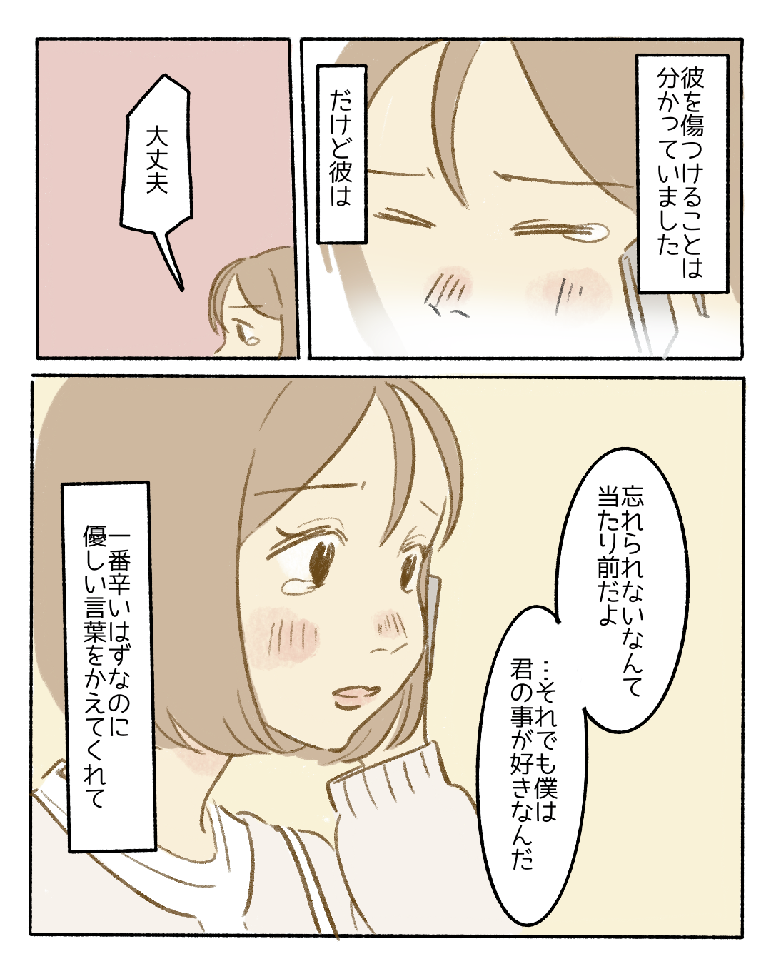 大好きだった人【Lovely漫画】 オリジナル漫画 2024年11月29日 目次 こちらのLovely漫画もおすすめ! 後輩に一目惚れした話【Lovely漫画】 中学三年生で思い切って生徒会に入り、新メンバーへの説明会で連絡先を交換した一人の後輩から後日、「無視された」と言われ…?©どんぐり/エピソード:匿名 寒い冬も君がいれば【Lovely漫画】 雪が積もる冬の寒い日…のはずが、気になり始めていた彼の行動のせいで、人生で一番熱い日に…!©倖/エピソード:佐藤 遠距離恋愛のカタチ【Lovely漫画】 高校から付き合っていた彼が卒業後、就職で遠方に。遠距離恋愛が始まり、慣れない大学生活の中、唯一の楽しみは彼との電話だった…©おひつじぐも/エピソード:あさげ 謝り足りない「ごめんね」【Lovely漫画】 自分から手放したのに…忘れられないあの人©しのだちかこ/エピソード:にお ライター Lovely編集部 編集部レポや最新情報など皆さんの「知りたい」をお届け!よろしくお願いします♡ Related article / 関連記事 オリジナル漫画 メンヘラ彼氏にサヨナラ【Lovely漫画】 ©みんみ 2022年3月29日 オリジナル漫画 年下イケメン彼氏に翻弄されるオンナの毎日#3【Lovely漫画】 ©みんみ 2022年3月29日 オリジナル漫画 2人暮らしのゆる家事日記~気まぐれ旦那の献立作りの巻き~後編【Lovely漫画】 ©みんみ 2022年3月29日 オリジナル漫画 年下イケメン彼氏に翻弄されるオンナの毎日#1【Lovely漫画】 ©みんみ「初めての○○の話 前編」 2022年3月29日 オリジナル漫画 年下イケメン彼氏に翻弄されるオンナの毎日#2【Lovely漫画】 ©みんみ「初めての○○の話 後編」 2022年3月29日 1 2 3 オリジナル漫画 よかったらシェアしてね! URLをコピーしました! URLをコピーしました! 私への扱いだけ雑なママ友6【稲漫画】 バツイチの女性との結婚はアリ?ナシ?男性の本音を調査!