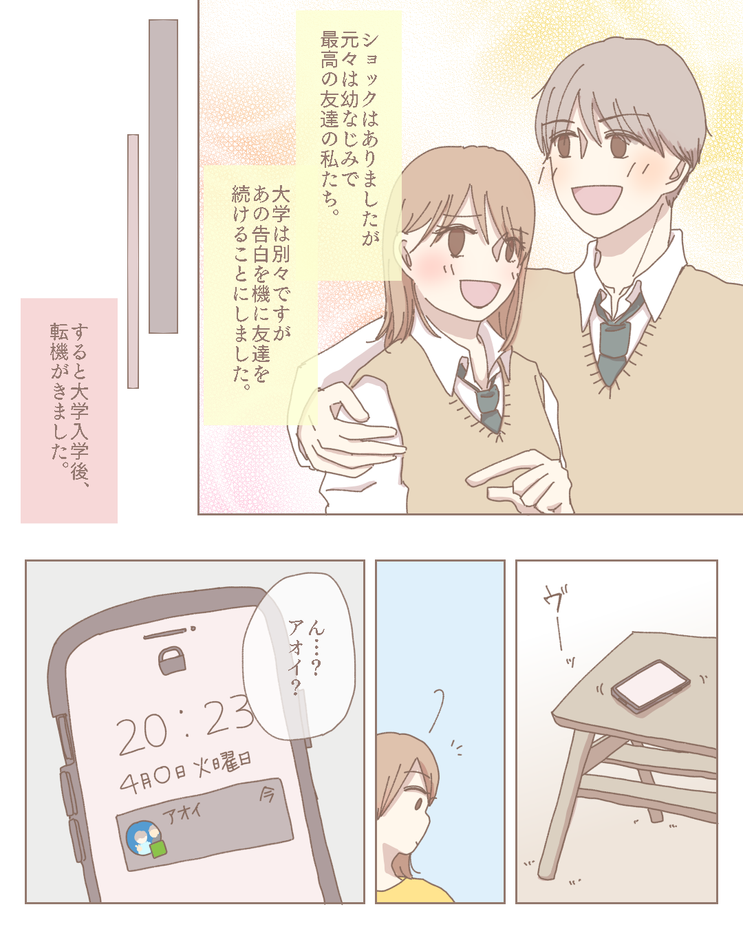 最高の友達のままで【Lovely漫画】 オリジナル漫画 2025年2月3日 目次 こちらのLovely漫画もおすすめ! 長くて一途な恋愛物語【Lovely漫画】 中高一貫校に通う私。高校一年生で初めて同じクラスになった彼が実は秀才と知ってから気になる存在に…©はにぃ/エピソード:ハニーライオン 素直になれない両思い【Lovely漫画】 恋愛に奥手の人見知りな私。人気者のクラスメートに気に入られ、屋上で二人きりに…©あやたきくこ/エピソード:アリス 幼馴染と淡い約束【Lovely漫画】 引っ越してしまった大好きな幼馴染と幼い頃「結婚しよう」と約束をした。それから現在高校生になった私の学校にその幼馴染が転校してきて…©つむぎ/エピソード:yukidaruma* 連絡が途絶えて一ヶ月…彼の気持ちが知りたい!そんな時は復縁・縁結びに強い「電話占いカリス」へ[PR] 彼から距離を置きたいと告げられ連絡も途絶えた。ずっと待ってはみたものの、そろそろ解決の糸口が欲しい…!そんな方には復縁・縁結びに強い「電話占いカリス」がおすすめ!合格率わずか5%以下の厳選された占い師が、24時間体制であなたを幸せへと導くお手伝いをしてくれます。「当たる」占い師の力、少し借りてみませんか? ライター Lovely編集部 編集部レポや最新情報など皆さんの「知りたい」をお届け!よろしくお願いします♡ Related article / 関連記事 オリジナル漫画 メンヘラ彼氏にサヨナラ【Lovely漫画】 ©みんみ 2022年3月29日 オリジナル漫画 年下イケメン彼氏に翻弄されるオンナの毎日#3【Lovely漫画】 ©みんみ 2022年3月29日 オリジナル漫画 2人暮らしのゆる家事日記~気まぐれ旦那の献立作りの巻き~後編【Lovely漫画】 ©みんみ 2022年3月29日 オリジナル漫画 年下イケメン彼氏に翻弄されるオンナの毎日#1【Lovely漫画】 ©みんみ「初めての○○の話 前編」 2022年3月29日 オリジナル漫画 年下イケメン彼氏に翻弄されるオンナの毎日#2【Lovely漫画】 ©みんみ「初めての○○の話 後編」 2022年3月29日 1 2 オリジナル漫画 よかったらシェアしてね! URLをコピーしました! URLをコピーしました! モラハラ夫は改心するのか32【稲漫画】 コストコ川崎倉庫店(神奈川)の営業時間やアクセスまとめ!