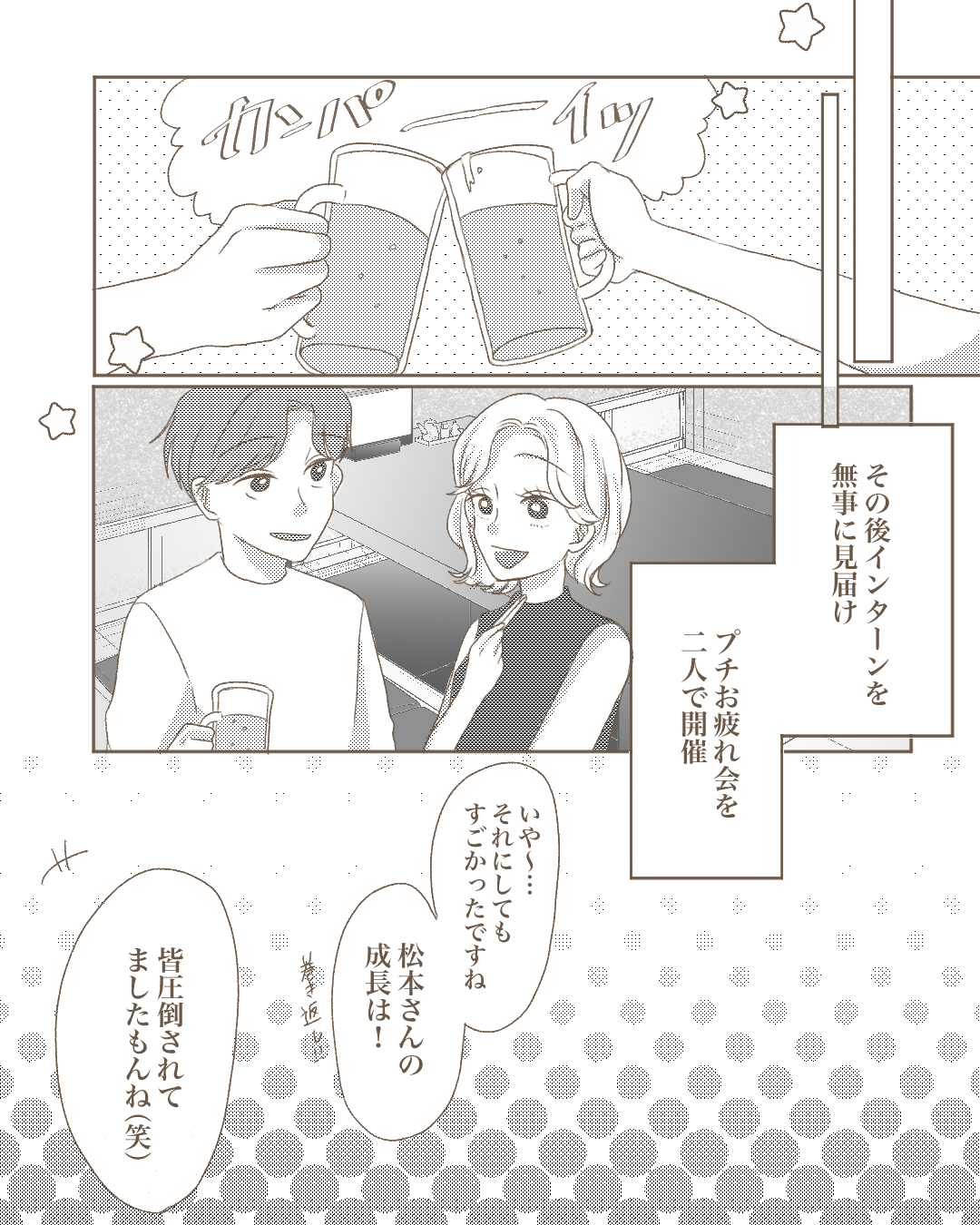 社内恋愛【Lovely漫画】 オリジナル漫画 2022年9月29日 目次 こちらのLovely漫画もおすすめ! 5歳上の彼【Lovely漫画】 入社式の当日、上司に一目惚れをした私。ある日、先輩から「私のことが好きらしい」と聞いてすぐに…©おはぎ/エピソード:しー 運命の優しい彼【Lovely漫画】 三年半付き合っていた彼に突然振られ、恋愛に不安を抱える私。職場の研修で出会った彼は今まで出会った人とはどこか違う雰囲気で…©倖/エピソード:ばしこ 8個上の先輩【Lovely漫画】 いつも意地悪してくるけど相談を聞いてくれる8個上の先輩。ある日、いつものように相談をしていたら涙が…。男の人の前、ましてや会社の人の前では泣かないようにしてたのに、やってしまった…。©紫蘭子/エピソード:したん ライター Lovely編集部 編集部レポや最新情報など皆さんの「知りたい」をお届け!よろしくお願いします♡ Related article / 関連記事 オリジナル漫画 メンヘラ彼氏にサヨナラ【Lovely漫画】 ©みんみ 2022年3月29日 オリジナル漫画 年下イケメン彼氏に翻弄されるオンナの毎日#3【Lovely漫画】 ©みんみ 2022年3月29日 オリジナル漫画 2人暮らしのゆる家事日記~気まぐれ旦那の献立作りの巻き~後編【Lovely漫画】 ©みんみ 2022年3月29日 オリジナル漫画 年下イケメン彼氏に翻弄されるオンナの毎日#1【Lovely漫画】 ©みんみ「初めての○○の話 前編」 2022年3月29日 オリジナル漫画 年下イケメン彼氏に翻弄されるオンナの毎日#2【Lovely漫画】 ©みんみ「初めての○○の話 後編」 2022年3月29日 1 2 オリジナル漫画 よかったらシェアしてね! URLをコピーしました! URLをコピーしました! コンパクトなのにパワフル清浄!「Levoit Core 300S 空気清浄機」を使ってみた! かままの(第一子)育児記録 13【かまま漫画】