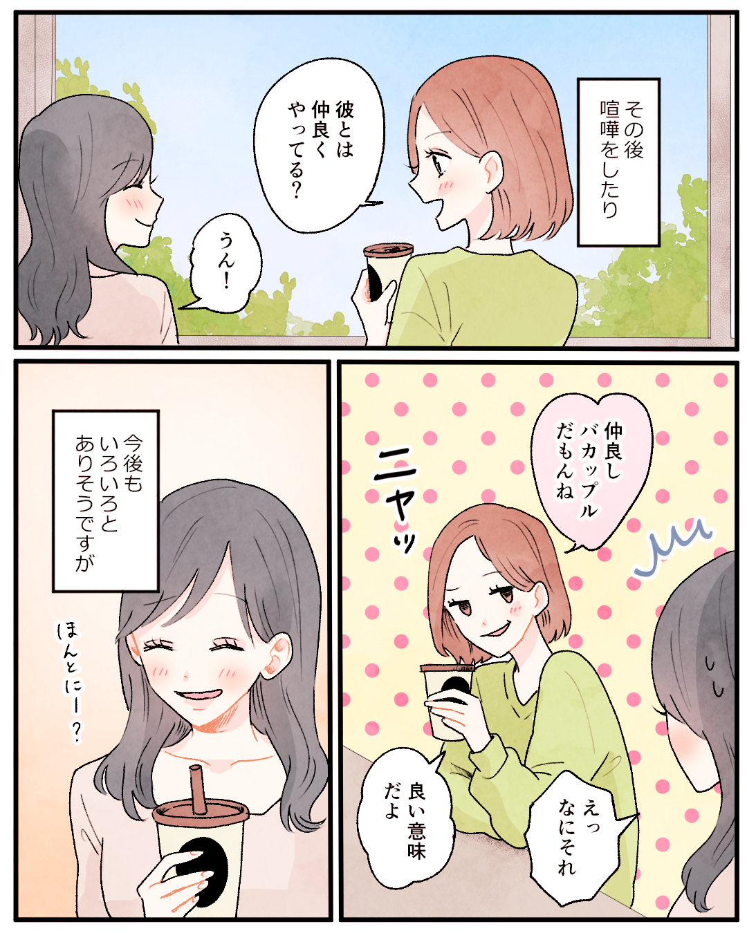 初めての告白【Lovely漫画】 オリジナル漫画 2024年11月6日 目次 どんぐりさんの作品をもっと読む! どんぐりさんの作品一覧【Lovely漫画】 どんぐりさんの人気作をおまとめしています! こちらのLovely漫画もおすすめ! 漫画の世界?【Lovely漫画】 同級生の彼氏がいる私。彼のことを重いと感じ、少し距離を置こうとした矢先…©どんぐり/エピソード:杏菜 エイプリルフール【Lovely漫画】 同じ会社の6歳年下の彼を好きになった。14年恋愛から遠のいていた私は…©どんぐり/エピソード:はるはる 私を見つけてくれてありがとう【Lovely漫画】 学生の頃、携帯ショップで店員として接客してくれた彼と5年後に再会。同じ業界の同僚として一緒に働くようになり…©どんぐり/エピソード:匿名 初恋が実った話【Lovely漫画】 小学生のときに好きになり、中学の卒業間際に手紙で告白するも、別々の高校に進学し疎遠になっていた2人。でもあることがきっかけで・・・ ©倖/エピソード:ゆう ライター Lovely編集部 編集部レポや最新情報など皆さんの「知りたい」をお届け!よろしくお願いします♡ Related article / 関連記事 オリジナル漫画 メンヘラ彼氏にサヨナラ【Lovely漫画】 ©みんみ 2022年3月29日 オリジナル漫画 年下イケメン彼氏に翻弄されるオンナの毎日#3【Lovely漫画】 ©みんみ 2022年3月29日 オリジナル漫画 2人暮らしのゆる家事日記~気まぐれ旦那の献立作りの巻き~後編【Lovely漫画】 ©みんみ 2022年3月29日 オリジナル漫画 年下イケメン彼氏に翻弄されるオンナの毎日#1【Lovely漫画】 ©みんみ「初めての○○の話 前編」 2022年3月29日 オリジナル漫画 年下イケメン彼氏に翻弄されるオンナの毎日#2【Lovely漫画】 ©みんみ「初めての○○の話 後編」 2022年3月29日 1 2 オリジナル漫画 よかったらシェアしてね! URLをコピーしました! URLをコピーしました! 再会から動き出した恋【Lovely漫画】 透明感のある肌になるには?美肌を保つスキンケアを解説!