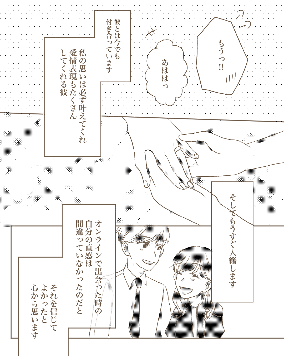 オンラインで感じた運命【Lovely漫画】 オリジナル漫画 2022年9月29日 目次 こちらのLovely漫画もおすすめ! 社内恋愛【Lovely漫画】 インターン生の世話係を任された私。指導に苦戦しているときに助けてくれたのは…©おはぎ/エピソード:匿名 推しメン決定♡【Lovely漫画】 社内異動で出会ったのが、1つ下の後輩だった彼。仕事のミスでやけ酒をしているところで偶然出くわしたのをきっかけに…自分から告白!?©匿名/エピソード:なな 運命の優しい彼【Lovely漫画】 三年半付き合っていた彼に突然振られ、恋愛に不安を抱える私。職場の研修で出会った彼は今まで出会った人とはどこか違う雰囲気で…©倖/エピソード:ばしこ ライター Lovely編集部 編集部レポや最新情報など皆さんの「知りたい」をお届け!よろしくお願いします♡ Related article / 関連記事 オリジナル漫画 メンヘラ彼氏にサヨナラ【Lovely漫画】 ©みんみ 2022年3月29日 オリジナル漫画 年下イケメン彼氏に翻弄されるオンナの毎日#3【Lovely漫画】 ©みんみ 2022年3月29日 オリジナル漫画 2人暮らしのゆる家事日記~気まぐれ旦那の献立作りの巻き~後編【Lovely漫画】 ©みんみ 2022年3月29日 オリジナル漫画 年下イケメン彼氏に翻弄されるオンナの毎日#1【Lovely漫画】 ©みんみ「初めての○○の話 前編」 2022年3月29日 オリジナル漫画 年下イケメン彼氏に翻弄されるオンナの毎日#2【Lovely漫画】 ©みんみ「初めての○○の話 後編」 2022年3月29日 1 2 オリジナル漫画 よかったらシェアしてね! URLをコピーしました! URLをコピーしました! コンパクトなのにパワフル清浄!「Levoit Core 300S 空気清浄機」を使ってみた! かままの(第一子)育児記録 13【かまま漫画】