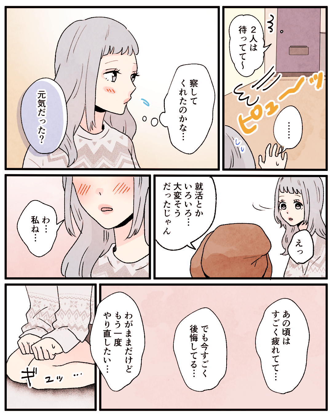 元カレと復縁した話【Lovely漫画】 オリジナル漫画 2024年8月21日 目次 どんぐりさんの作品をもっと読む! どんぐりさんの作品一覧【Lovely漫画】 どんぐりさんの人気作をおまとめしています! こちらのLovely漫画もおすすめ! 2年後に【Lovely漫画】 大好きな彼に振られて未練たらたらな日々を過ごしていた私。ある日、彼に近づけるきっかけが出来て…。©倖/エピソード:みおさん ネットが繋いだ運命【Lovely漫画】 中学生の頃、オンラインチャットゲームにハマっていた私。隣の県に住む同い年の男の子と意気投合し…©サクライ/エピソード:匿名 2度目の恋【Lovely漫画】 とってもラブラブな私たち。お互いのことが大好きな2人ですが…©倖/エピソード:りっぺ ライター Lovely編集部 編集部レポや最新情報など皆さんの「知りたい」をお届け!よろしくお願いします♡ Related article / 関連記事 オリジナル漫画 メンヘラ彼氏にサヨナラ【Lovely漫画】 ©みんみ 2022年3月29日 オリジナル漫画 年下イケメン彼氏に翻弄されるオンナの毎日#3【Lovely漫画】 ©みんみ 2022年3月29日 オリジナル漫画 2人暮らしのゆる家事日記~気まぐれ旦那の献立作りの巻き~後編【Lovely漫画】 ©みんみ 2022年3月29日 オリジナル漫画 年下イケメン彼氏に翻弄されるオンナの毎日#1【Lovely漫画】 ©みんみ「初めての○○の話 前編」 2022年3月29日 オリジナル漫画 年下イケメン彼氏に翻弄されるオンナの毎日#2【Lovely漫画】 ©みんみ「初めての○○の話 後編」 2022年3月29日 1 2 オリジナル漫画 よかったらシェアしてね! URLをコピーしました! URLをコピーしました! これってあるある…?【Lovely漫画】 初対面の会話の話題はこれ!絶対盛り上がる25の内容やネタとは!