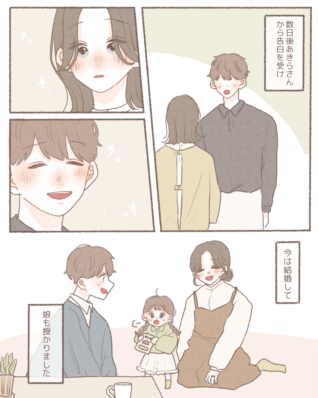 あのとき登録できていたら…【Lovely漫画】 オリジナル漫画 2024年12月27日 目次 こちらのLovely漫画もおすすめ! キミとの出会い【Lovely漫画】 高校の合格発表後にできた新一年生の超巨大コミュニケーションアプリのグループ。趣味が同じで仲良くなれそうな彼と意気投合したけれど、顔まではわからないまま時は過ぎ…©うり/エピソード:おひさま 同期との運命の出会い【Lovely漫画】 研修で一緒になった同期に一目惚れした私。特に進展もなく迎えた研修最終日、彼から食事に誘われて…。©マナミン/エピソード:ゆゆまる。 夢をつなぎとめてくれた彼【Lovely漫画】 ずっと憧れていたグランドスタッフの仕事に就き3年。責任者として頑張っていた中、コロナ禍になり…©どんぐり/エピソード:uri ライター Lovely編集部 編集部レポや最新情報など皆さんの「知りたい」をお届け!よろしくお願いします♡ Related article / 関連記事 オリジナル漫画 メンヘラ彼氏にサヨナラ【Lovely漫画】 ©みんみ 2022年3月29日 オリジナル漫画 年下イケメン彼氏に翻弄されるオンナの毎日#3【Lovely漫画】 ©みんみ 2022年3月29日 オリジナル漫画 2人暮らしのゆる家事日記~気まぐれ旦那の献立作りの巻き~後編【Lovely漫画】 ©みんみ 2022年3月29日 オリジナル漫画 年下イケメン彼氏に翻弄されるオンナの毎日#1【Lovely漫画】 ©みんみ「初めての○○の話 前編」 2022年3月29日 オリジナル漫画 年下イケメン彼氏に翻弄されるオンナの毎日#2【Lovely漫画】 ©みんみ「初めての○○の話 後編」 2022年3月29日 1 2 オリジナル漫画 よかったらシェアしてね! URLをコピーしました! URLをコピーしました! 私への扱いだけ雑なママ友34【稲漫画】 年上彼氏の可愛いところ【Lovely漫画】