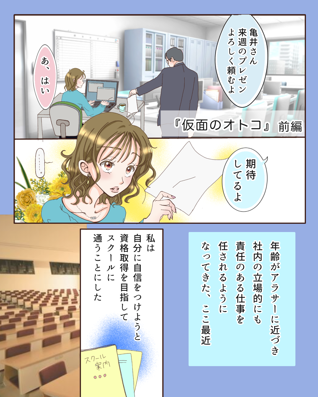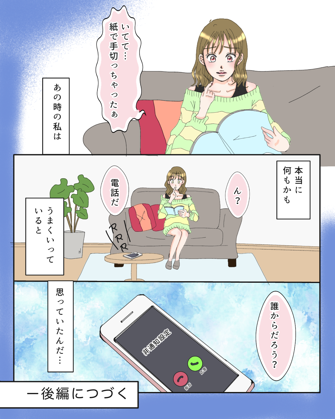 仮面のオトコ<前編>【Lovely漫画】 オリジナル漫画 2024年8月7日 後編はこちら 仮面のオトコ<後編>【Lovely漫画】 資格取得スクールで出会った彼と順風満帆な日々を送る私。しかし、ある日「彼の嫁」と名乗る女性から電話がかかってきて…。©あやたきくこ/エピソード:匿名 こちらのLovely漫画もおすすめ! あやたきくこさんの作品一覧【Lovely漫画】 あやたきくこさんの人気作をおまとめしています! ライター Lovely編集部 編集部レポや最新情報など皆さんの「知りたい」をお届け!よろしくお願いします♡ 目次Related article / 関連記事 オリジナル漫画 メンヘラ彼氏にサヨナラ【Lovely漫画】 ©みんみ 2022年3月29日 オリジナル漫画 年下イケメン彼氏に翻弄されるオンナの毎日#3【Lovely漫画】 ©みんみ 2022年3月29日 オリジナル漫画 2人暮らしのゆる家事日記~気まぐれ旦那の献立作りの巻き~後編【Lovely漫画】 ©みんみ 2022年3月29日 オリジナル漫画 年下イケメン彼氏に翻弄されるオンナの毎日#1【Lovely漫画】 ©みんみ「初めての○○の話 前編」 2022年3月29日 オリジナル漫画 年下イケメン彼氏に翻弄されるオンナの毎日#2【Lovely漫画】 ©みんみ「初めての○○の話 後編」 2022年3月29日 オリジナル漫画 よかったらシェアしてね! URLをコピーしました! URLをコピーしました! プライドだけ一丁前の男に騙されちゃダメ3【稲漫画】 本当の友達とは?本当の友達を見分ける5つの方法を解説!