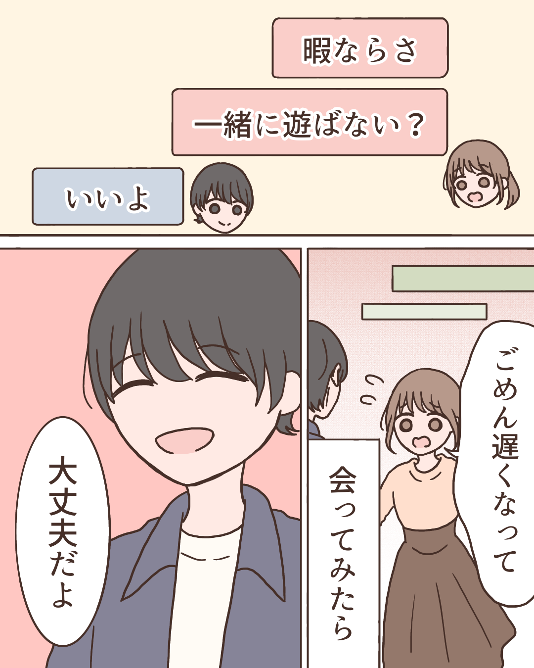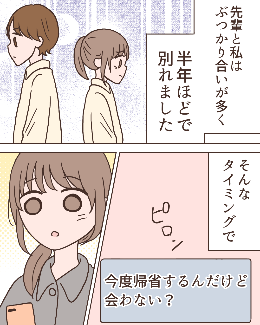 遠回りした話【Lovely漫画】 オリジナル漫画 2025年1月6日 ゆの。さんの作品をもっと読む! ゆの。さんの作品一覧【Lovely漫画】 ゆの。さんの作品をおまとめしています! こちらのLovely漫画もおすすめ! 運命の人に出会えた話【Lovely漫画】 ©ゆの。/エピソード:そら 中距離恋愛中の彼氏との誕生日【Lovely漫画】 埼玉と神奈川で中距離恋愛をしている私たち。週に1回の会える時間が楽しみだったのに、誕生日は彼が忙しいから会えないって…寂しいけど我慢をしていたら?!©kurumi/エピソード:なな アプリから始まった恋愛【Lovely漫画】 アプリで出会った年下の彼と、初デートで初対面とは思えない程仲良くなり、徐々に惹かれていく私。けれど過去に恋愛の苦い思い出があり…?©倖/エピソード:あきら ライター Lovely編集部 編集部レポや最新情報など皆さんの「知りたい」をお届け!よろしくお願いします♡ 目次Related article / 関連記事 オリジナル漫画 メンヘラ彼氏にサヨナラ【Lovely漫画】 ©みんみ 2022年3月29日 オリジナル漫画 年下イケメン彼氏に翻弄されるオンナの毎日#3【Lovely漫画】 ©みんみ 2022年3月29日 オリジナル漫画 2人暮らしのゆる家事日記~気まぐれ旦那の献立作りの巻き~後編【Lovely漫画】 ©みんみ 2022年3月29日 オリジナル漫画 年下イケメン彼氏に翻弄されるオンナの毎日#1【Lovely漫画】 ©みんみ「初めての○○の話 前編」 2022年3月29日 オリジナル漫画 年下イケメン彼氏に翻弄されるオンナの毎日#2【Lovely漫画】 ©みんみ「初めての○○の話 後編」 2022年3月29日 オリジナル漫画 よかったらシェアしてね! URLをコピーしました! URLをコピーしました! 私への扱いだけ雑なママ友35【稲漫画】 あの時の返事を…【Lovely漫画】