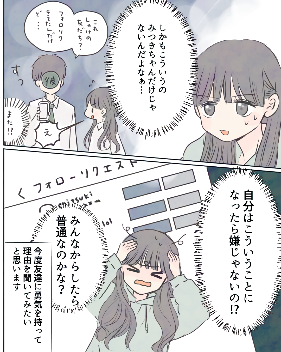 これってあるある…?【Lovely漫画】 オリジナル漫画 2024年8月20日 なぁさんの作品をもっと読む! なぁさんの作品一覧【Lovely漫画】 なぁさんの人気作をおまとめしています! こちらのLovely漫画もおすすめ! 君がいたから【Lovely漫画】 席が隣同士のクラスメイト。ただ仲良くしていただけなのに周囲の嫉妬を買ってしまうが…©あやたきくこ/エピソード:東野 大好きでした【Lovely漫画】 高校2年、生徒会の役員をしていたときの話。作業を手伝ってくれたサッカー部のイケメン女子に恋しました。©どんぐり/エピソード:月乃 電車で拾った子【Lovely漫画】 ©スズキマナ/エピソード:鯉 ライター Lovely編集部 編集部レポや最新情報など皆さんの「知りたい」をお届け!よろしくお願いします♡ 目次Related article / 関連記事 オリジナル漫画 メンヘラ彼氏にサヨナラ【Lovely漫画】 ©みんみ 2022年3月29日 オリジナル漫画 年下イケメン彼氏に翻弄されるオンナの毎日#3【Lovely漫画】 ©みんみ 2022年3月29日 オリジナル漫画 2人暮らしのゆる家事日記~気まぐれ旦那の献立作りの巻き~後編【Lovely漫画】 ©みんみ 2022年3月29日 オリジナル漫画 年下イケメン彼氏に翻弄されるオンナの毎日#1【Lovely漫画】 ©みんみ「初めての○○の話 前編」 2022年3月29日 オリジナル漫画 年下イケメン彼氏に翻弄されるオンナの毎日#2【Lovely漫画】 ©みんみ「初めての○○の話 後編」 2022年3月29日 オリジナル漫画 よかったらシェアしてね! URLをコピーしました! URLをコピーしました! 浮気の代償は…【Lovely漫画】 元カレと復縁した話【Lovely漫画】