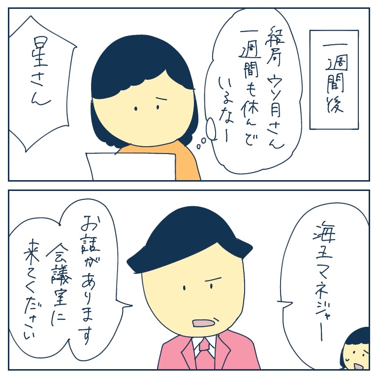 ウソで私をおとしいれる人13【稲漫画】 オリジナル漫画 2024年4月22日 前回のお話はこちら! ウソで私をおとしいれる人12【稲漫画】 フォロワーさんが体験したコールセンターで働いていた時の恐怖体験…©稲 ▼次の話 ウソで私をおとしいれる人14【稲漫画】 フォロワーさんが体験したコールセンターで働いていた時の恐怖体験…©稲 稲さんの連載一覧はこちら! 毎日更新!サラリーウーマン稲のエッセイ漫画 毎日更新!サラリーウーマン稲のエッセイ漫画 こちらのLovely漫画もおすすめ♡ 寝落ち通話で素敵な夜を【Lovely漫画】 私の日課は、遠距離恋愛中の彼との寝落ち通話です。ある日、先に寝てしまった彼との通話を繋げたままにしていたら、予想外の展開になって…!?©sui/エピソード:匿名 待たされた初デートの話【Lovely漫画】 アプリで出会った同い年の彼と初めて会う日、彼は遅延情報も無いのになぜか遅れて待ち合わせ場所に現れて…?©どんぐり/エピソード:まーごん まっすぐな恋【Lovely漫画】 大学の先輩に一目惚れ。毎日話しかけるも先輩は逃げてしまう…©れも/エピソード:メイ ライター 稲 エッセイ漫画を描くサラリーウーマン!Instagram【@inasan_mainichi】 目次Related article / 関連記事 オリジナル漫画 メンヘラ彼氏にサヨナラ【Lovely漫画】 ©みんみ 2022年3月29日 オリジナル漫画 年下イケメン彼氏に翻弄されるオンナの毎日#3【Lovely漫画】 ©みんみ 2022年3月29日 オリジナル漫画 2人暮らしのゆる家事日記~気まぐれ旦那の献立作りの巻き~後編【Lovely漫画】 ©みんみ 2022年3月29日 オリジナル漫画 年下イケメン彼氏に翻弄されるオンナの毎日#1【Lovely漫画】 ©みんみ「初めての○○の話 前編」 2022年3月29日 オリジナル漫画 年下イケメン彼氏に翻弄されるオンナの毎日#2【Lovely漫画】 ©みんみ「初めての○○の話 後編」 2022年3月29日 オリジナル漫画 よかったらシェアしてね! URLをコピーしました! URLをコピーしました! ビジネスカジュアルの靴選び!おしゃれでしっかり感もあるデザインは? 【2024年】香水のプレゼントの意味とは?贈る相手別のおすすめ20選
