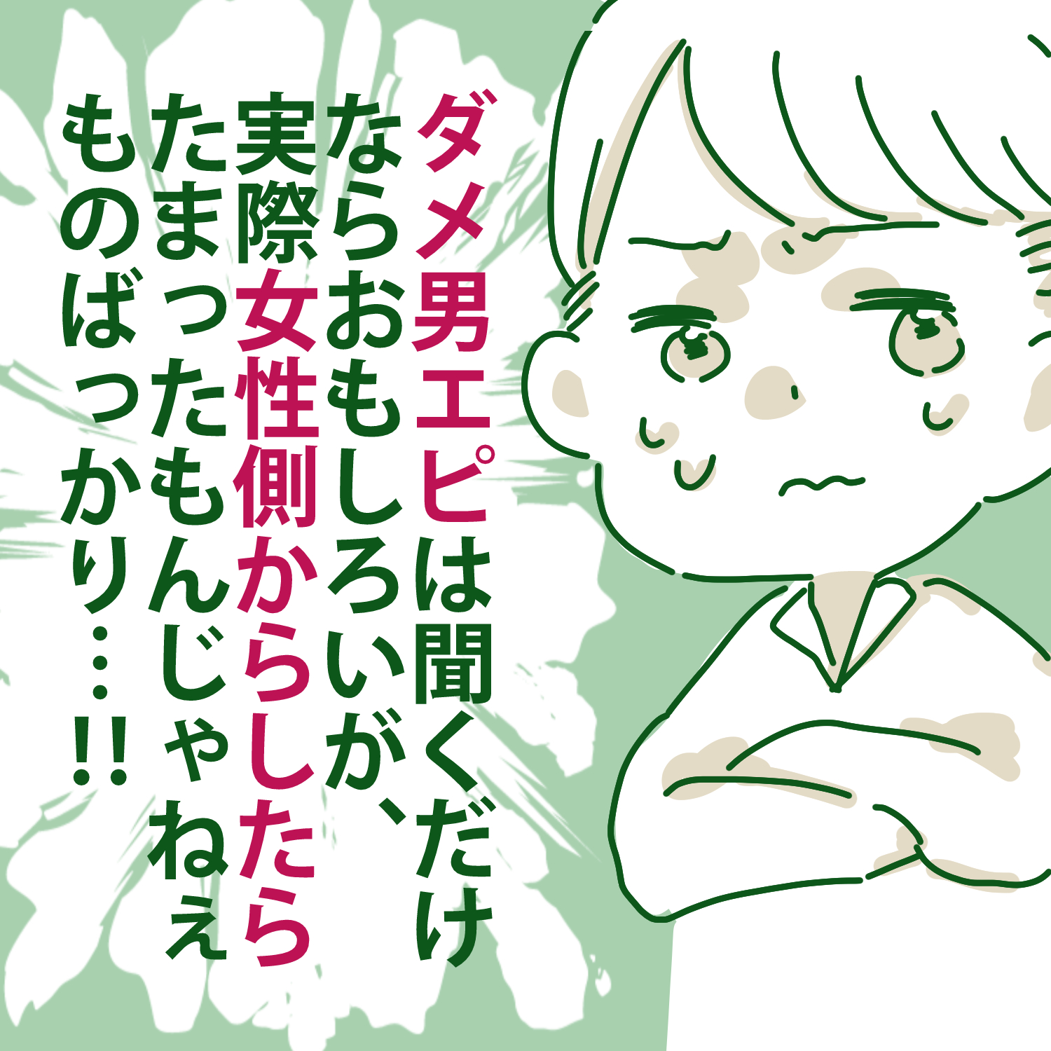 【新連載】ダメ男実録0【ガマ太郎漫画】 オリジナル漫画 2023年9月14日 続きはこちら! ダメ男実録1【ガマ太郎漫画】 あなたの周りにもこんなダメ男いませんか…?@ガマ太郎 ▼ガマ太郎先生の前回の連載はこちら ヤリすぎ夫とハジめての妻0【ガマ太郎漫画】 夫が惚れたのは恋愛経験がない大人しい妻、だったはずなのに…©ガマ太郎 ガマ太郎さんの連載一覧 ガマ太郎 自身の離婚経験をもとに描いてます。Instagram(@gamgama.gama) ガマ太郎さんのInstagramはこちら @gamgama.gama こちらのLovely漫画もおすすめ 溺愛♥️司波さん1【茂木はな漫画】 ©茂木はな ホントのキモチ【Lovely漫画】 強がりな私を優しさで受け止めてくれた彼との、付き合う前のお話♡©あやたきくこ/エピソード:わーちゃん 自分の気持ちを確信した放課後【Lovely漫画】 いつも一緒に下校していた彼。それが当たり前じゃないと気付いた時、自分の気持ちを確信する…。©kurumi/エピソード:すやん 目次Related article / 関連記事 オリジナル漫画 メンヘラ彼氏にサヨナラ【Lovely漫画】 ©みんみ 2022年3月29日 オリジナル漫画 年下イケメン彼氏に翻弄されるオンナの毎日#3【Lovely漫画】 ©みんみ 2022年3月29日 オリジナル漫画 2人暮らしのゆる家事日記~気まぐれ旦那の献立作りの巻き~後編【Lovely漫画】 ©みんみ 2022年3月29日 オリジナル漫画 年下イケメン彼氏に翻弄されるオンナの毎日#1【Lovely漫画】 ©みんみ「初めての○○の話 前編」 2022年3月29日 オリジナル漫画 年下イケメン彼氏に翻弄されるオンナの毎日#2【Lovely漫画】 ©みんみ「初めての○○の話 後編」 2022年3月29日 オリジナル漫画 よかったらシェアしてね! URLをコピーしました! URLをコピーしました! システムキッチンにするリフォーム費用はどれくらい?相場や基礎知識を解説! 愛も冷めちゃう「彼女のいびき」男性の本音から原因と止める方法まで。