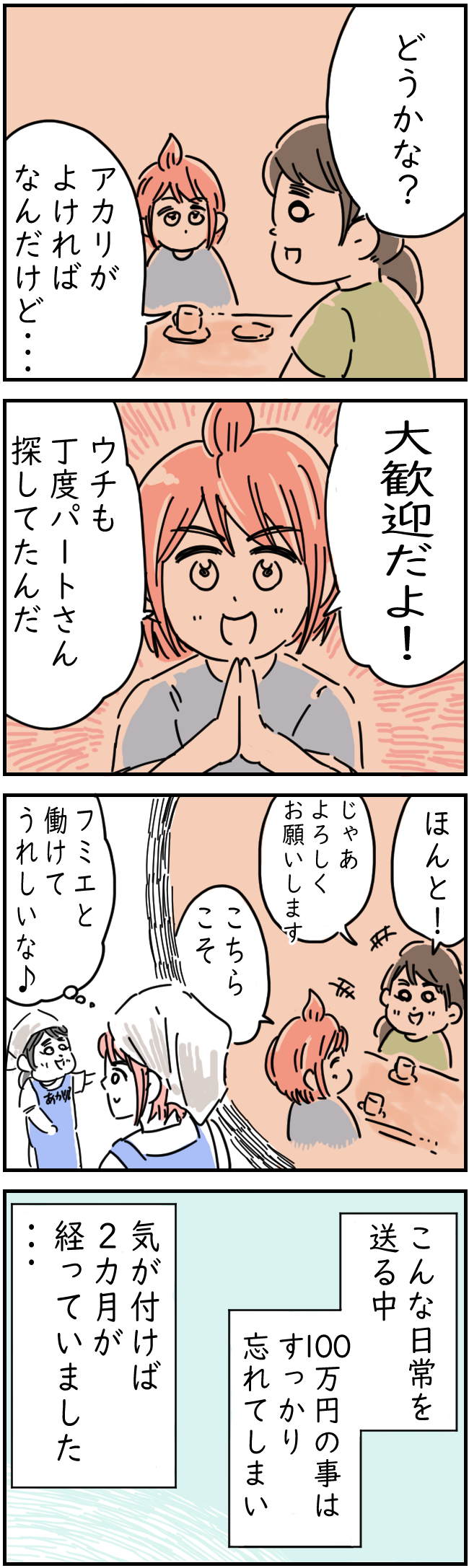 リサイクル店で買ったレジャーシートに100万円入ってた話34【くまお漫画】 オリジナル漫画 2023年12月7日 前回のお話はこちら 次回更新をお楽しみに! 目次くまおさんのSNS、ブログはこちら Instagram @kumaonomanga ブログ はじめまして。(くまお)といいます。 連載漫画、育児漫画、エッセイ漫画などを描いています✨ こちらのLovely漫画もおすすめ 2人で泣いた日【Lovely漫画】 付き合って2年半になる大好きな彼、進学をきっかけに遠距離恋愛をすることに。彼が最後に見せた表情は…©なぁ/エピソード:匿名 強烈ボスママ物語【Lovely漫画】 同じ幼稚園のママ友は、悪い人ではないけどちょっと強烈…©どんぐり/エピソード:匿名 社内恋愛【Lovely漫画】 インターン生の世話係を任された私。指導に苦戦しているときに助けてくれたのは…©おはぎ/エピソード:匿名 ライター くまお Related article / 関連記事 オリジナル漫画 メンヘラ彼氏にサヨナラ【Lovely漫画】 ©みんみ 2022年3月29日 オリジナル漫画 年下イケメン彼氏に翻弄されるオンナの毎日#3【Lovely漫画】 ©みんみ 2022年3月29日 オリジナル漫画 2人暮らしのゆる家事日記~気まぐれ旦那の献立作りの巻き~後編【Lovely漫画】 ©みんみ 2022年3月29日 オリジナル漫画 年下イケメン彼氏に翻弄されるオンナの毎日#1【Lovely漫画】 ©みんみ「初めての○○の話 前編」 2022年3月29日 オリジナル漫画 年下イケメン彼氏に翻弄されるオンナの毎日#2【Lovely漫画】 ©みんみ「初めての○○の話 後編」 2022年3月29日 オリジナル漫画 よかったらシェアしてね! URLをコピーしました! URLをコピーしました! 髪を触る癖がある人の心理と原因!ストレスのせい? 片思いが脈なしだとわかる男性の脈なしサイン13選!