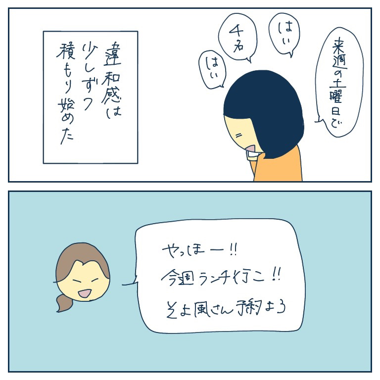 自己中なママ友とは仲良くできません2【稲漫画】 オリジナル漫画 2024年3月11日 ▼前回のお話 自己中なママ友とは仲良くできません1【稲漫画】 これは自己中なママ友の対応に困ったフォロワー様の体験談。©稲 ▼次のお話 自己中なママ友とは仲良くできません3【稲漫画】 これは自己中なママ友の対応に困ったフォロワー様の体験談。©稲 稲さんの連載一覧はこちら! 毎日更新!サラリーウーマン稲のエッセイ漫画 毎日更新!サラリーウーマン稲のエッセイ漫画 こちらのLovely漫画もおすすめ♡ シンママの秘密【Lovely漫画】 夜のウォーキング中にママ友の旦那さんが別のママ友と密会していて…©なぁ/エピソード:匿名 強烈ボスママ物語【Lovely漫画】 同じ幼稚園のママ友は、悪い人ではないけどちょっと強烈…©どんぐり/エピソード:匿名 本当は怖いママ友の話【Lovely漫画】 ママ友間でも非常に評判なゆうこさん。でも彼女の本性は…©ぼめそ/エピソード:匿名 ライター 稲 エッセイ漫画を描くサラリーウーマン!Instagram【@inasan_mainichi】 目次Related article / 関連記事 オリジナル漫画 メンヘラ彼氏にサヨナラ【Lovely漫画】 ©みんみ 2022年3月29日 オリジナル漫画 年下イケメン彼氏に翻弄されるオンナの毎日#3【Lovely漫画】 ©みんみ 2022年3月29日 オリジナル漫画 2人暮らしのゆる家事日記~気まぐれ旦那の献立作りの巻き~後編【Lovely漫画】 ©みんみ 2022年3月29日 オリジナル漫画 年下イケメン彼氏に翻弄されるオンナの毎日#1【Lovely漫画】 ©みんみ「初めての○○の話 前編」 2022年3月29日 オリジナル漫画 年下イケメン彼氏に翻弄されるオンナの毎日#2【Lovely漫画】 ©みんみ「初めての○○の話 後編」 2022年3月29日 オリジナル漫画 よかったらシェアしてね! URLをコピーしました! URLをコピーしました! 修学旅行の最高の日【Lovely漫画】 O型男性とB型女子の恋愛は?体の相性がいい理由を血液型別でご紹介!