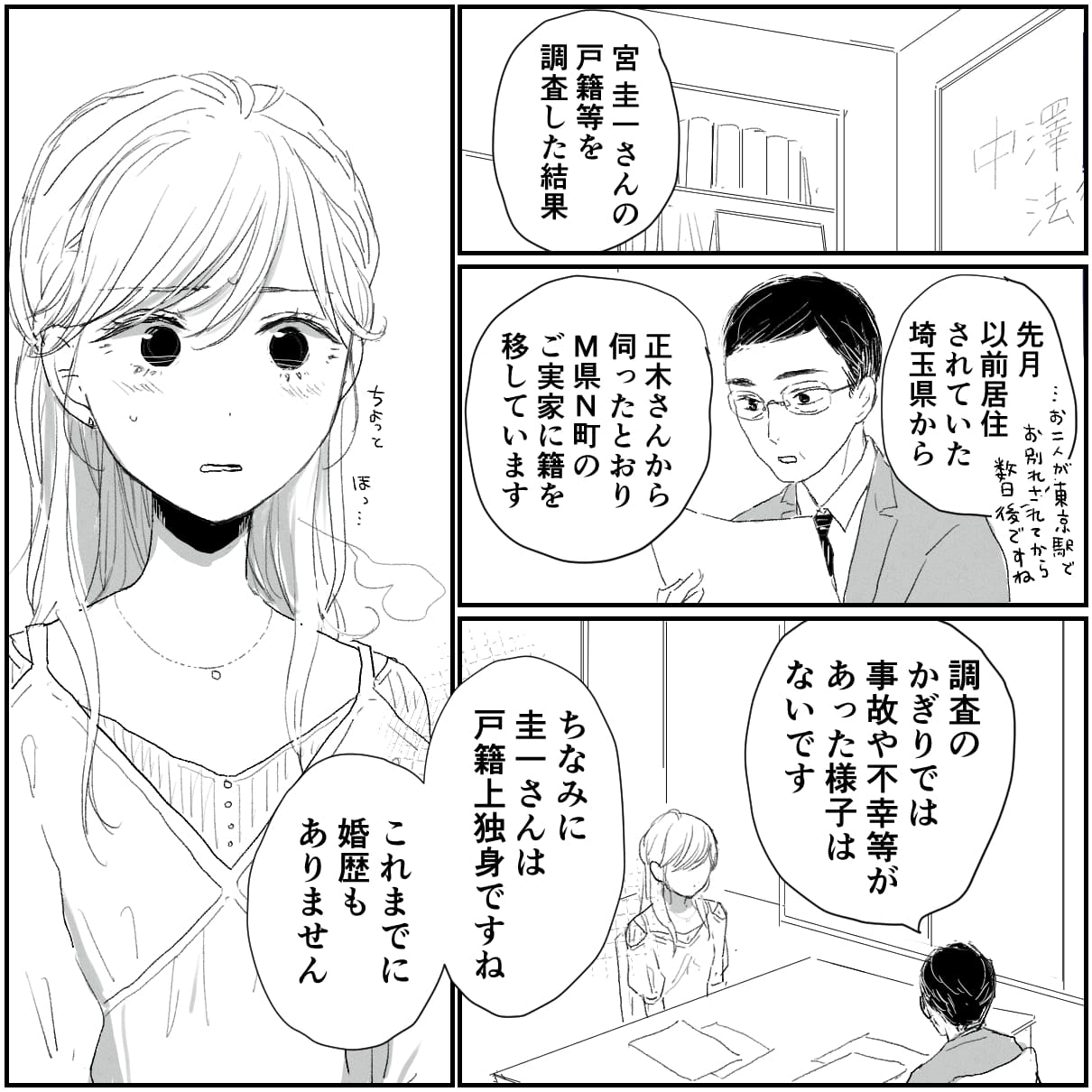 彼は暗闇の向こう28【モヨ漫画】 オリジナル漫画 2024年6月11日 ▼前回のお話 彼は暗闇の向こう27【モヨ漫画】 婚約者と音信不通になった180日間…©モヨ 続きはこちら! 彼は暗闇の向こう29【モヨ漫画】 婚約者と音信不通になった180日間…©モヨ モヨさんの連載一覧 モヨ モヨさんのInstagramはこちら 27K Followers, 44 Following, 135 Posts – See Instagram photos and videos from モヨ (@moyo17104) こちらのLovely漫画もおすすめ♡ 自分を成長させてくれた人【Lovely漫画】 就職で上京し友達の居なかった頃、SNSで知り合ったある男性。次第に彼に惹かれ、あいまいな関係に。しかしある日彼から留学に行くと聞かされる。©望月悠/エピソード:ゆう 不気味な隣人【Lovely漫画】 同じマンションに住むママさんがかなり変わった人で、ある日駐車場で恐怖の出来事が…©on/エピソード:匿名 7個上の先輩【Lovely漫画】 バイト先で出会った7個上の先輩を好きになった私。仲良くなり、2人で色々な場所に行きました。そんなある日、先輩が元カノの話をし始めて…。©マナミン/エピソード:匿名 ライター モヨ 趣味で絵をかく会社員です。 Instagram【@moyo17104】 目次Related article / 関連記事 オリジナル漫画 メンヘラ彼氏にサヨナラ【Lovely漫画】 ©みんみ 2022年3月29日 オリジナル漫画 年下イケメン彼氏に翻弄されるオンナの毎日#3【Lovely漫画】 ©みんみ 2022年3月29日 オリジナル漫画 2人暮らしのゆる家事日記~気まぐれ旦那の献立作りの巻き~後編【Lovely漫画】 ©みんみ 2022年3月29日 オリジナル漫画 年下イケメン彼氏に翻弄されるオンナの毎日#1【Lovely漫画】 ©みんみ「初めての○○の話 前編」 2022年3月29日 オリジナル漫画 年下イケメン彼氏に翻弄されるオンナの毎日#2【Lovely漫画】 ©みんみ「初めての○○の話 後編」 2022年3月29日 オリジナル漫画 よかったらシェアしてね! URLをコピーしました! URLをコピーしました! そらさん、月が綺麗ですね【Lovely漫画】 東海地方のおすすめデートスポット45選!カップルで行きたい!