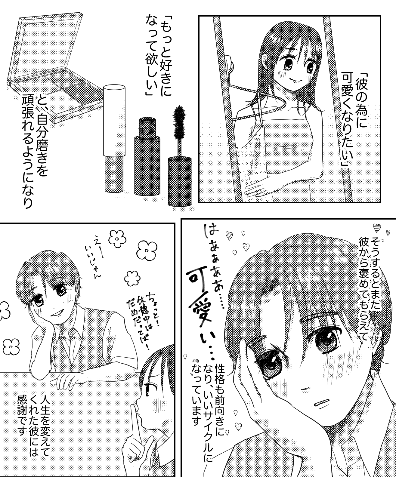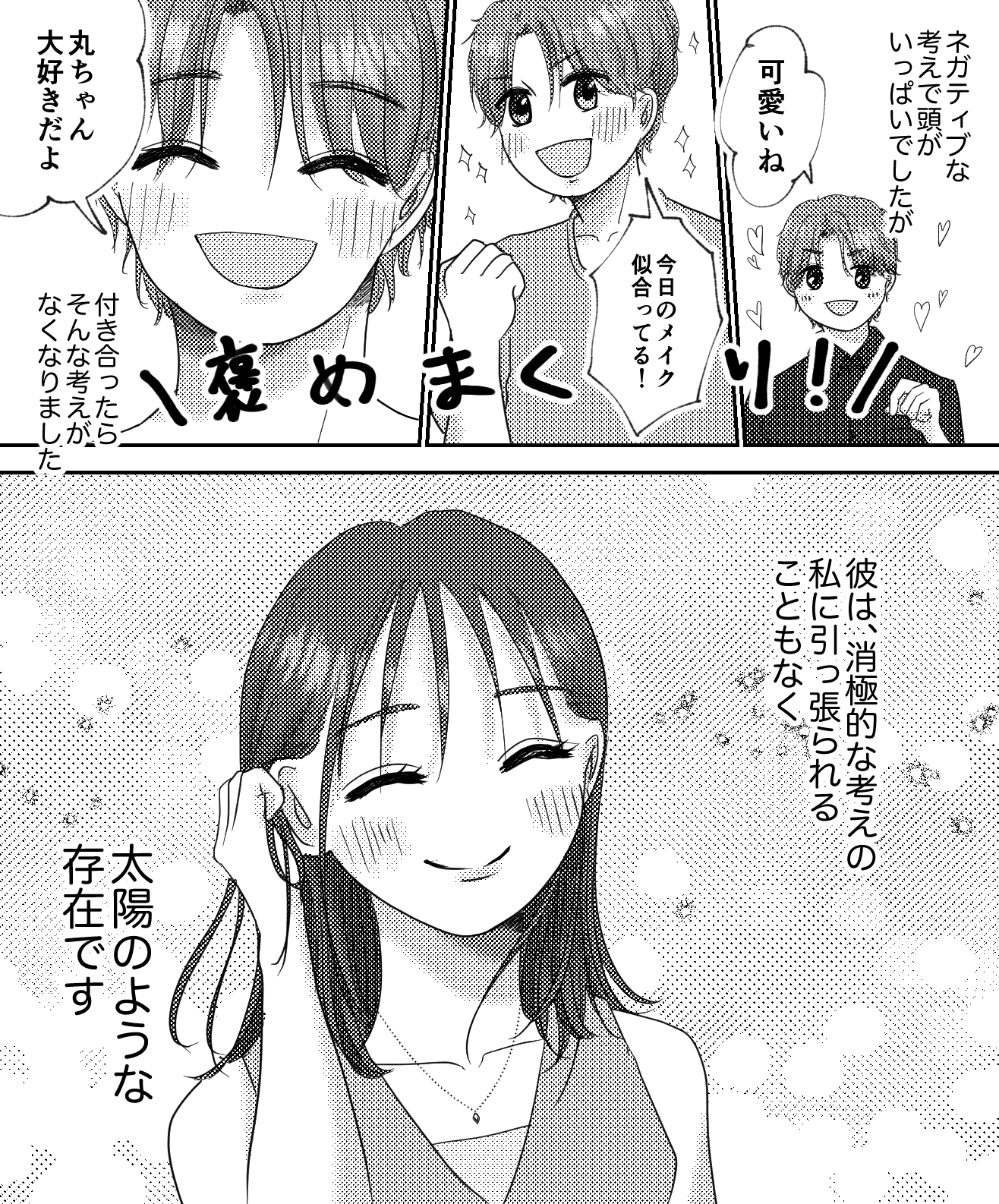 自信をつけてくれた彼【Lovely漫画】 オリジナル漫画 2025年1月28日 目次 こちらのLovely漫画もおすすめ♡ 口下手彼氏の愛情表現【Lovely漫画】 口下手でそっけない彼とのお泊りの日。ウトウト寝そうになっていると、耳元で聞こえてきたのは…。©なぁ/エピソード:ちょび 帰り際に…【Lovely漫画】 大学の年上彼氏とのドライブデートの帰り。その別れ際のできごと…©みほ/エピソード:リリバシちゃん 98%ツンな彼女【Lovely漫画】 その2%がめちゃくちゃ可愛い俺の彼女!©Sui/エピソード:ダージリン 最悪だし最低だけど最高で。【Lovely漫画】 私と彼との初対面は強烈だった。いきなり「服、ダサいよね」とディスってきて…©イラストレーター倖/エピソード:ふじみやま ライター Lovely編集部 編集部レポや最新情報など皆さんの「知りたい」をお届け!よろしくお願いします♡ Related article / 関連記事 オリジナル漫画 メンヘラ彼氏にサヨナラ【Lovely漫画】 ©みんみ 2022年3月29日 オリジナル漫画 年下イケメン彼氏に翻弄されるオンナの毎日#3【Lovely漫画】 ©みんみ 2022年3月29日 オリジナル漫画 2人暮らしのゆる家事日記~気まぐれ旦那の献立作りの巻き~後編【Lovely漫画】 ©みんみ 2022年3月29日 オリジナル漫画 年下イケメン彼氏に翻弄されるオンナの毎日#1【Lovely漫画】 ©みんみ「初めての○○の話 前編」 2022年3月29日 オリジナル漫画 年下イケメン彼氏に翻弄されるオンナの毎日#2【Lovely漫画】 ©みんみ「初めての○○の話 後編」 2022年3月29日 1 2 オリジナル漫画 よかったらシェアしてね! URLをコピーしました! URLをコピーしました! 初恋が実った話【Lovely漫画】 おしゃれなクロスバイク37選!女性や初心者におすすめのモデルも!