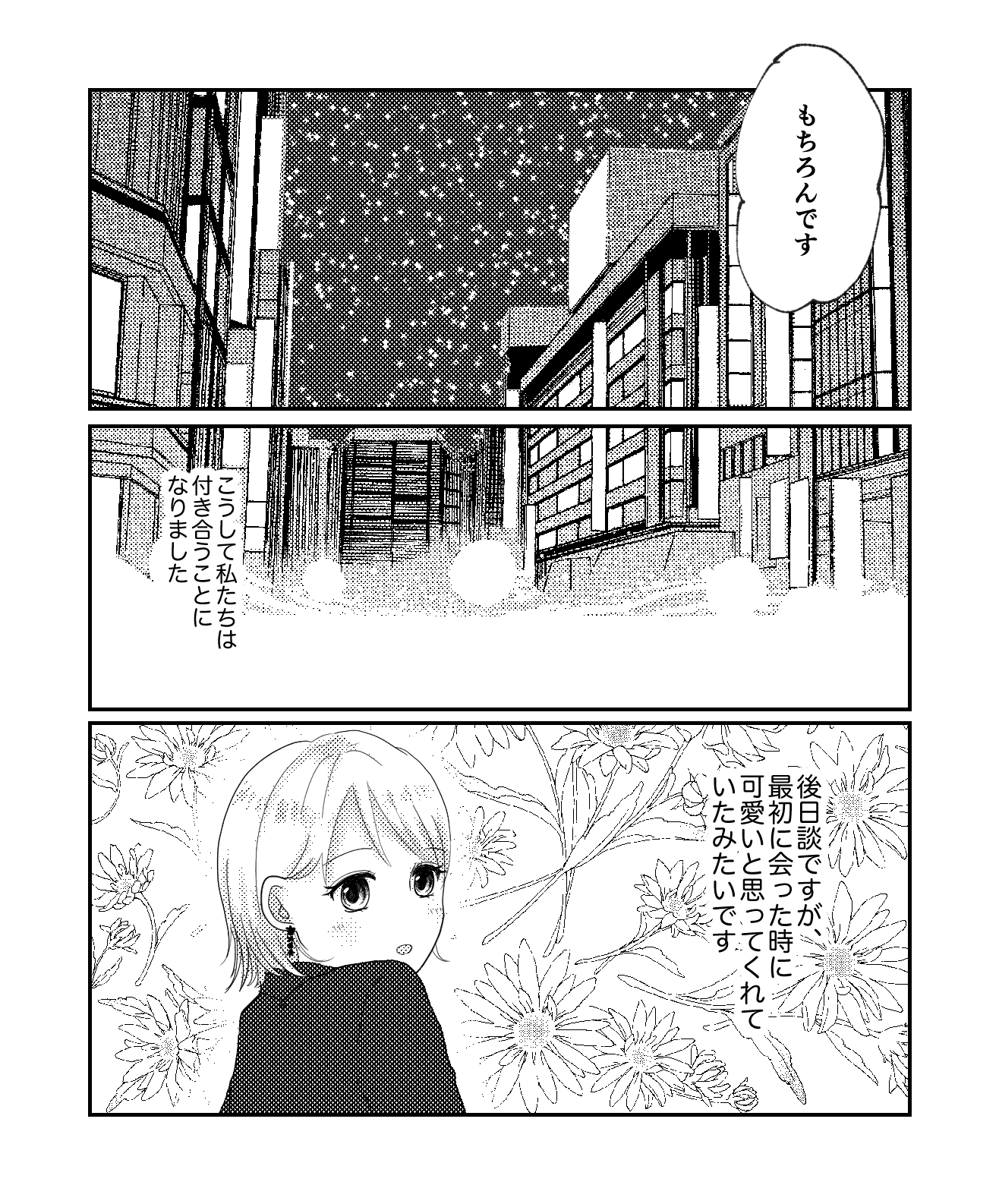 出会いはSNSで【Lovely漫画】 オリジナル漫画 2024年11月12日 目次 こちらのLovely漫画もおすすめ♡ 好きな人が出来たことが無い彼を好きにさせた話【Lovely漫画】 私が好きになったバイト先の店長は、「好き」という気持ちが分からない人で…。でも絶対に振り向かせてみせる!©しのだちかこ/エピソード:j 卒業式【Lovely漫画】 付き合って1年記念日、彼に手紙をプレゼントした♡でも彼は何も用意していない…。8歳も年上の社会人なのに。翌日、モヤモヤを切り替えてデートに行くと、サプライズが待っていた…。©あんころもち/エピソード:ちぃ 自分に自信が無かったの。【Lovely漫画】 運動部のマネージャーの私は、プレーヤーである1つ年上の先輩と仲良くなった。ある日先輩から「好きだ」と告白された…。嬉しい反面、自分に自信が無く…。©にぇり/エピソード:miiii 運命の人…?【Lovely漫画】 モラハラでDVの元彼と別れ、友達の勧めで登録したマッチングアプリ。メッセージのやり取りだけで満足していた私だったけど、ある日…©どんぐり/エピソード:椿 ライター Lovely編集部 編集部レポや最新情報など皆さんの「知りたい」をお届け!よろしくお願いします♡ Related article / 関連記事 オリジナル漫画 メンヘラ彼氏にサヨナラ【Lovely漫画】 ©みんみ 2022年3月29日 オリジナル漫画 年下イケメン彼氏に翻弄されるオンナの毎日#3【Lovely漫画】 ©みんみ 2022年3月29日 オリジナル漫画 2人暮らしのゆる家事日記~気まぐれ旦那の献立作りの巻き~後編【Lovely漫画】 ©みんみ 2022年3月29日 オリジナル漫画 年下イケメン彼氏に翻弄されるオンナの毎日#1【Lovely漫画】 ©みんみ「初めての○○の話 前編」 2022年3月29日 オリジナル漫画 年下イケメン彼氏に翻弄されるオンナの毎日#2【Lovely漫画】 ©みんみ「初めての○○の話 後編」 2022年3月29日 1 2 オリジナル漫画 よかったらシェアしてね! URLをコピーしました! URLをコピーしました! 彼の言葉で決心した話【Lovely漫画】 優しい顔になれちゃうメイクテク!優しい顔になりたい人必見!