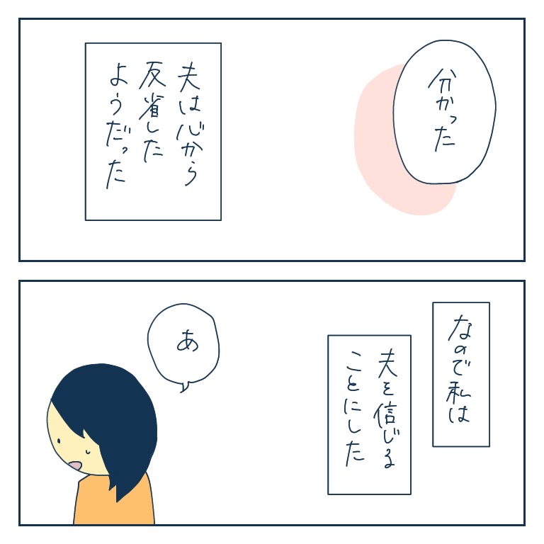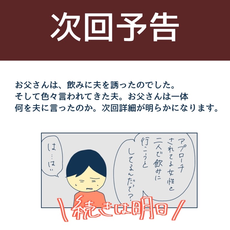 不倫じゃなければ何をしてもいいわけじゃない!! 20【稲漫画】 オリジナル漫画 2024年3月18日 ▼前回のお話 不倫じゃなければ何をしてもいいわけじゃない!! 19【稲漫画】 誰にでも優しい夫ですが、ある一人の女性と頻繁にメッセージのやり取りをしていることが判明。不倫じゃなければなんでもよいと思っている…?!これはフォロワー様の恐怖体験です。©稲 稲さんの連載一覧はこちら! 毎日更新!サラリーウーマン稲のエッセイ漫画 毎日更新!サラリーウーマン稲のエッセイ漫画 こちらのLovely漫画もおすすめ♡ やばい夫婦のお話【Lovelyオリジナル漫画】 子どもの同級生の悠太くんと駿くんのママとパパは、子どもの行事は常に2人で来るほどの仲。でも2人の距離は年々近くなっているような感じが…。©えふ子/エピソード:匿名 彼を支える覚悟【Lovely漫画】 二人の幸せな日常が、ある日突然崩れた。©おはぎ/エピソード:れもん 夫の優しさに圧巻です。【Lovely漫画】 ©azusa ライター 稲 エッセイ漫画を描くサラリーウーマン!Instagram【@inasan_mainichi】 目次Related article / 関連記事 オリジナル漫画 メンヘラ彼氏にサヨナラ【Lovely漫画】 ©みんみ 2022年3月29日 オリジナル漫画 年下イケメン彼氏に翻弄されるオンナの毎日#3【Lovely漫画】 ©みんみ 2022年3月29日 オリジナル漫画 2人暮らしのゆる家事日記~気まぐれ旦那の献立作りの巻き~後編【Lovely漫画】 ©みんみ 2022年3月29日 オリジナル漫画 年下イケメン彼氏に翻弄されるオンナの毎日#1【Lovely漫画】 ©みんみ「初めての○○の話 前編」 2022年3月29日 オリジナル漫画 年下イケメン彼氏に翻弄されるオンナの毎日#2【Lovely漫画】 ©みんみ「初めての○○の話 後編」 2022年3月29日 オリジナル漫画 よかったらシェアしてね! URLをコピーしました! URLをコピーしました! 失恋とホワイトデー【Lovely漫画】 コストコのリンツリンドールチョコが安い!販売期間はいつまで?【2024年】