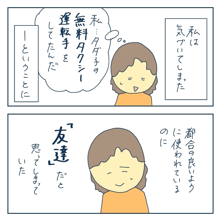 なんでもタダでやってくれるのが友達でしょ?9【稲漫画】 オリジナル漫画 2024年4月23日 ▼前回のお話 なんでもタダでやってくれるのが友達でしょ?8【稲漫画】 転職先で出会った友人…。最初は気さくで明るい人だと思っていたけど、とんでもない人だった!?これは実際にあったフォロワー様の恐怖体験©稲 ▼次の話 なんでもタダでやってくれるのが友達でしょ?10【稲漫画】 転職先で出会った友人…。最初は気さくで明るい人だと思っていたけど、とんでもない人だった!?これは実際にあったフォロワー様の恐怖体験©稲 稲さんの連載一覧はこちら! 毎日更新!サラリーウーマン稲のエッセイ漫画 毎日更新!サラリーウーマン稲のエッセイ漫画 こちらのLovely漫画もおすすめ♡ 仮面のオトコ<前編>【Lovely漫画】 資格取得スクールで出会った男性講師。彼と深い関係になるのに時間はかからなかった。しかし、彼には私の知らない秘密があって…!©あやたきくこ/エピソード:匿名 嫌な女シリーズ①相談に乗ってほしい女【Lovely漫画】 人気漫画家えふ子さんによる、Lovely初のオリジナルシリーズ! 彼氏や夫の周りにいたら嫌な女いますよね…。 ©えふ子 奥様は二重人格!?【Lovely漫画】 二つ隣に住む奥さんと良い距離感を保ちながら関係を築いていた。しかしある日、勤務先のスーパーで彼女と似た行動をする女性を見かけて…©えふ子/エピソード:匿名 ライター 稲 エッセイ漫画を描くサラリーウーマン!Instagram【@inasan_mainichi】 目次Related article / 関連記事 オリジナル漫画 メンヘラ彼氏にサヨナラ【Lovely漫画】 ©みんみ 2022年3月29日 オリジナル漫画 年下イケメン彼氏に翻弄されるオンナの毎日#3【Lovely漫画】 ©みんみ 2022年3月29日 オリジナル漫画 2人暮らしのゆる家事日記~気まぐれ旦那の献立作りの巻き~後編【Lovely漫画】 ©みんみ 2022年3月29日 オリジナル漫画 年下イケメン彼氏に翻弄されるオンナの毎日#1【Lovely漫画】 ©みんみ「初めての○○の話 前編」 2022年3月29日 オリジナル漫画 年下イケメン彼氏に翻弄されるオンナの毎日#2【Lovely漫画】 ©みんみ「初めての○○の話 後編」 2022年3月29日 オリジナル漫画 よかったらシェアしてね! URLをコピーしました! URLをコピーしました! なんでもタダでやってくれるのが友達でしょ?8【稲漫画】 しまむらの財布の魅力とは?お財布ショルダーが有名ブランド風?