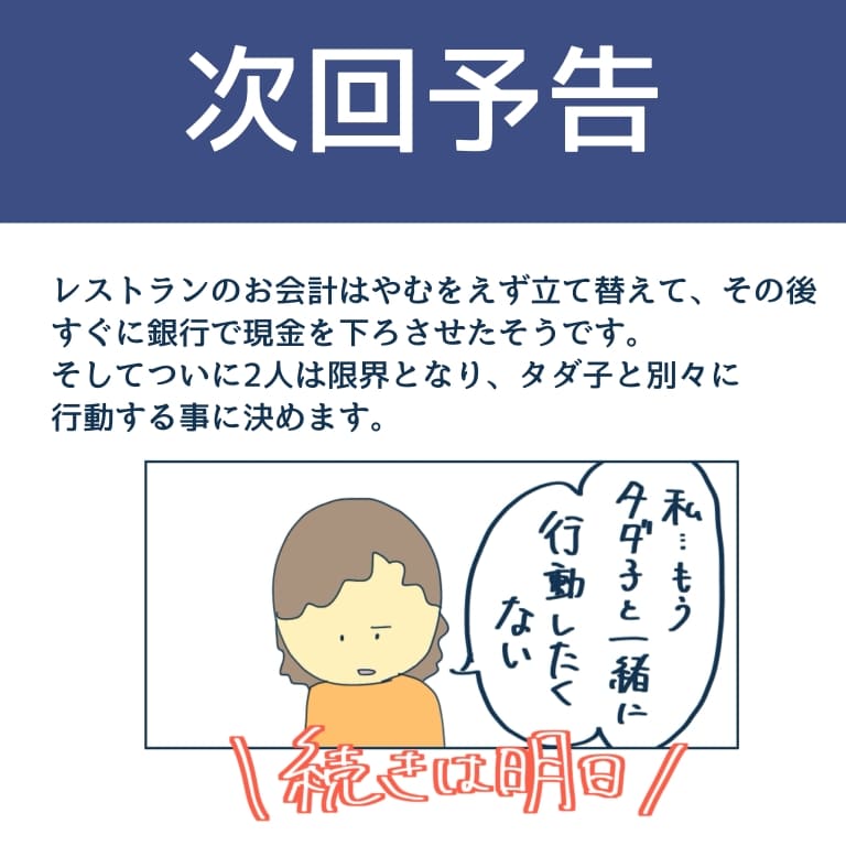 なんでもタダでやってくれるのが友達でしょ?17【稲漫画】 オリジナル漫画 2024年5月8日 ▼前回のお話 なんでもタダでやってくれるのが友達でしょ?16【稲漫画】 転職先で出会った友人…。最初は気さくで明るい人だと思っていたけど、とんでもない人だった!?これは実際にあったフォロワー様の恐怖体験©稲 ▼次の話 なんでもタダでやってくれるのが友達でしょ?18【稲漫画】 転職先で出会った友人…。最初は気さくで明るい人だと思っていたけど、とんでもない人だった!?これは実際にあったフォロワー様の恐怖体験©稲 稲さんの連載一覧はこちら! 毎日更新!サラリーウーマン稲のエッセイ漫画 毎日更新!サラリーウーマン稲のエッセイ漫画 こちらのLovely漫画もおすすめ♡ 母乳じゃないなんてかわいそうと言われた話1【稲漫画】 お正月、夫の実家へ行くことになったフォロワー様。たくさんの親戚が集まっていました。しかし、そこで育児について偏った考えをぶつけられてしまいます。泣きそうになるフォロワー様でしたが…。©稲 遅刻の理由が過激化する友人1【稲漫画】 フォロワーさんの体験した遅刻磨友人の過激言い訳とは…©稲 義両親が私を見下してくる1【稲漫画】 優しく真面目な彼からのプロポーズに、迷うことなくOKした主人公。後日、彼の両親に挨拶をすることになりました。第一印象は優しい両親でしたが、次第に言動に違和感を感じるように…。今回は、以前配信した「母乳じゃないなんてかわいそうと言われた話」のあられさんが主人公のお話です。©稲 ライター 稲 エッセイ漫画を描くサラリーウーマン!Instagram【@inasan_mainichi】 目次Related article / 関連記事 オリジナル漫画 メンヘラ彼氏にサヨナラ【Lovely漫画】 ©みんみ 2022年3月29日 オリジナル漫画 年下イケメン彼氏に翻弄されるオンナの毎日#3【Lovely漫画】 ©みんみ 2022年3月29日 オリジナル漫画 2人暮らしのゆる家事日記~気まぐれ旦那の献立作りの巻き~後編【Lovely漫画】 ©みんみ 2022年3月29日 オリジナル漫画 年下イケメン彼氏に翻弄されるオンナの毎日#1【Lovely漫画】 ©みんみ「初めての○○の話 前編」 2022年3月29日 オリジナル漫画 年下イケメン彼氏に翻弄されるオンナの毎日#2【Lovely漫画】 ©みんみ「初めての○○の話 後編」 2022年3月29日 オリジナル漫画 よかったらシェアしてね! URLをコピーしました! URLをコピーしました! ズル休み【Lovely漫画】 デートで手をつなぐタイミング・セリフおすすめ11選!【恋の極意】