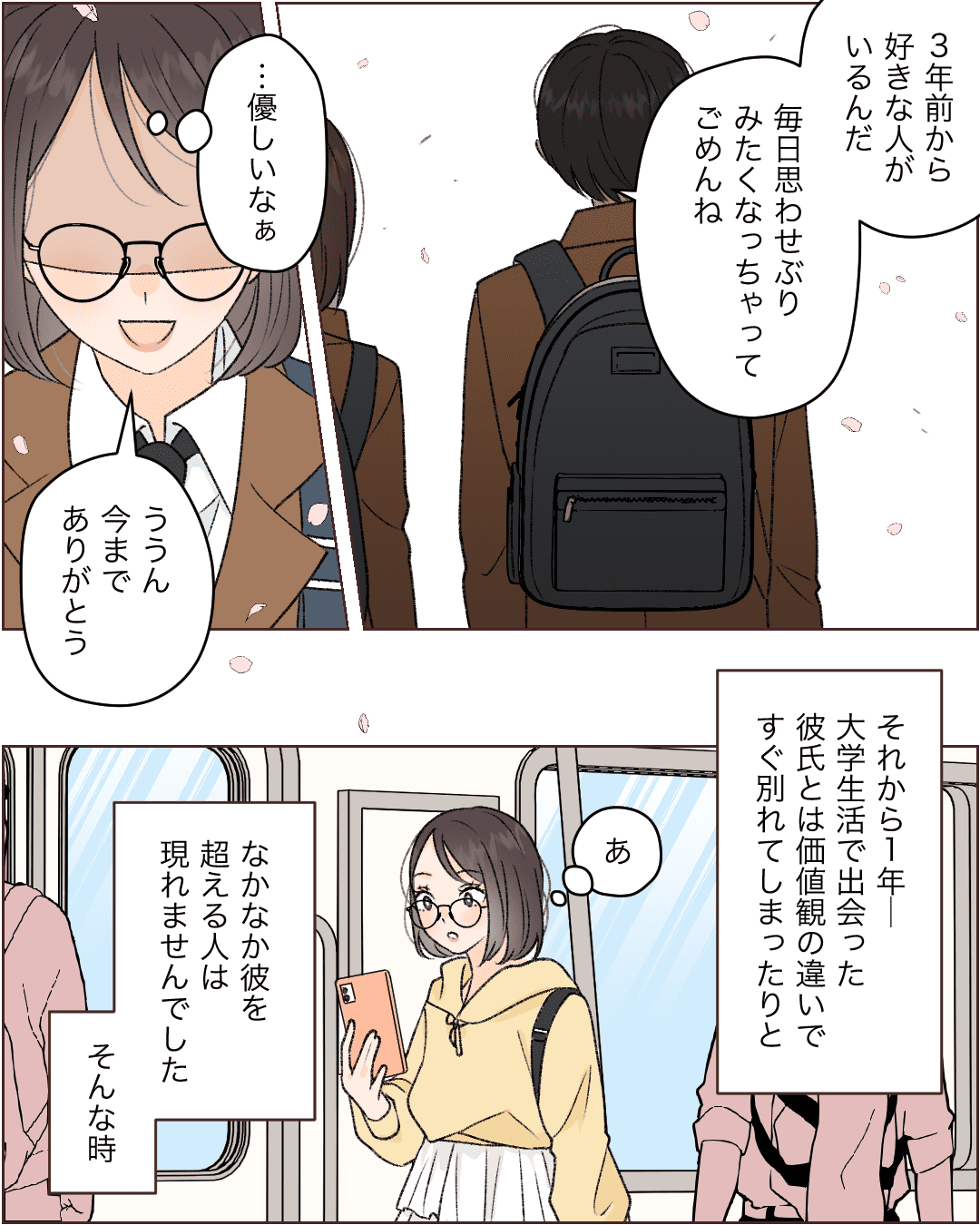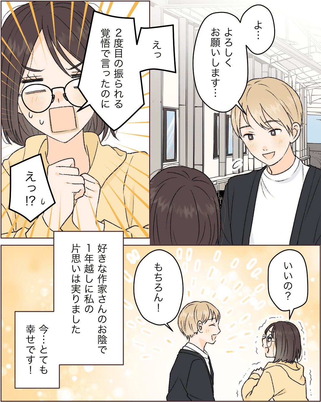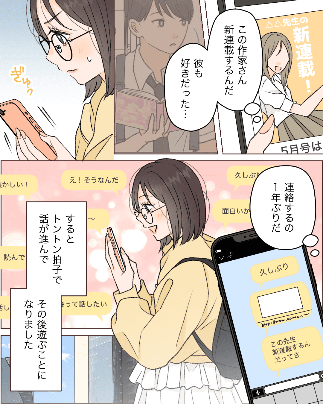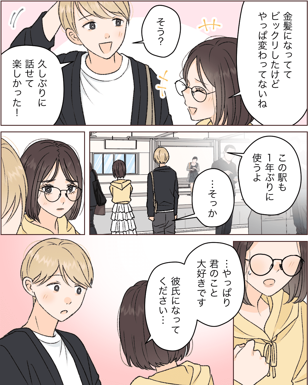 片思いが実った話【Lovely漫画】 オリジナル漫画 2024年5月1日 目次 振られてしまった高校時代を経て再び・・・ カンザキミナミさんの作品をもっと読む! カンザキミナミさんの作品一覧【Lovely漫画】 カンザキミナミさんの作品をおまとめしています! こちらのLovely漫画もおすすめ♡ 彼のジャージ【Lovely漫画】 大好きな彼が最近なんだか冷たい?そんなある日、半袖のジャージで寒がる私に気づいた彼は…©あんころもち/エピソード:ほっしぃ 6年振りの再会で彼と…【Lovely漫画】 中学生の時気になっていた彼と久しぶりの再会。二人でデートをするようになり、ある日の帰り道彼から…©どんぐり/エピソード:スマイル 今もずっとあなたを思ってます【Lovely漫画】 高校三年の試験で会った試験監督の新任の先生。この日から先生と仲良くする機会が増えた私は、次第に先生に惹かれていき…©倖/エピソード:りり 素直になれない両思い【Lovely漫画】 恋愛に奥手の人見知りな私。人気者のクラスメートに気に入られ、屋上で二人きりに…©あやたきくこ/エピソード:アリス ライター Lovely編集部 編集部レポや最新情報など皆さんの「知りたい」をお届け!よろしくお願いします♡ Related article / 関連記事 オリジナル漫画 メンヘラ彼氏にサヨナラ【Lovely漫画】 ©みんみ 2022年3月29日 オリジナル漫画 年下イケメン彼氏に翻弄されるオンナの毎日#3【Lovely漫画】 ©みんみ 2022年3月29日 オリジナル漫画 2人暮らしのゆる家事日記~気まぐれ旦那の献立作りの巻き~後編【Lovely漫画】 ©みんみ 2022年3月29日 オリジナル漫画 年下イケメン彼氏に翻弄されるオンナの毎日#1【Lovely漫画】 ©みんみ「初めての○○の話 前編」 2022年3月29日 オリジナル漫画 年下イケメン彼氏に翻弄されるオンナの毎日#2【Lovely漫画】 ©みんみ「初めての○○の話 後編」 2022年3月29日 1 2 オリジナル漫画 よかったらシェアしてね! URLをコピーしました! URLをコピーしました! 彼の中の彼女【Lovely漫画】 デートメイクの5つの方法をタイプ別紹介!ナチュラルがおすすめ?