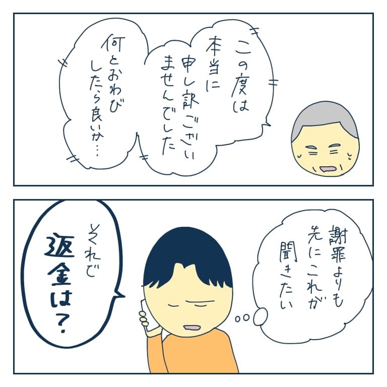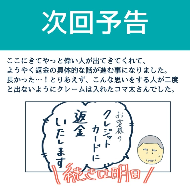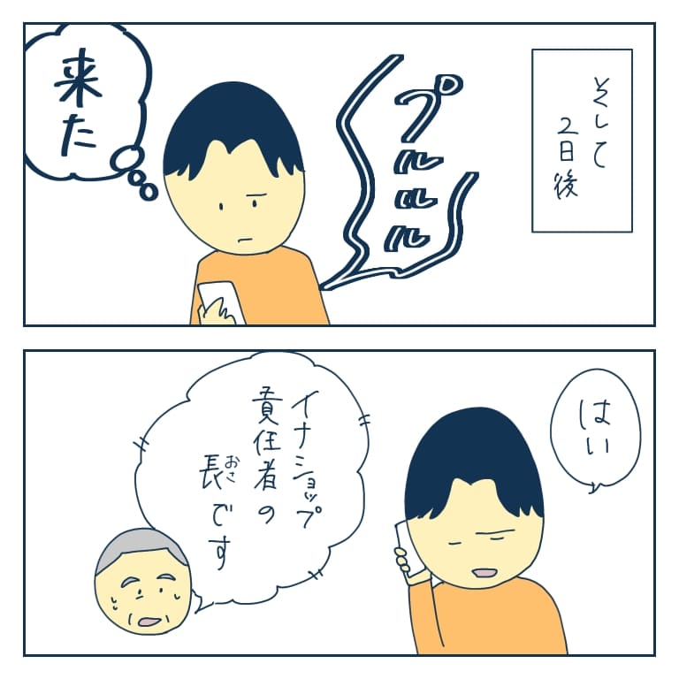 ネットで10万で買った商品が届きません!!15【稲漫画】 オリジナル漫画 2024年6月23日 ▼前回のお話 ネットで10万で買った商品が届きません!!14【稲漫画】 最近ではほとんどの人が利用しているネットショッピング。便利ではあるものの思わぬトラブルに発展してしまうことも…!これは、フォロワーさんが経験した涙の失敗談。©稲 ▼次の話 ネットで10万で買った商品が届きません!!16【稲漫画】 最近ではほとんどの人が利用しているネットショッピング。便利ではあるものの思わぬトラブルに発展してしまうことも…!これは、フォロワーさんが経験した涙の失敗談。©稲 稲さんの連載一覧はこちら! 毎日更新!サラリーウーマン稲のエッセイ漫画 毎日更新!サラリーウーマン稲のエッセイ漫画 こちらのLovely漫画もおすすめ♡ ネットで知り合った人にお金を要求されたはなし1【稲漫画】 出会いが欲しかった社会人なりたての頃の恐怖体験!©稲 ムカツく不動産ともめた話1【稲漫画】 引越しの立会いに来た不動産屋さんがとんでもない人だった体験©稲 巧妙な手口 ストーカーから助けてくれた人1【稲漫画】 女性の一人歩きはご用心!仕事帰りに後を付けられた女性が経験した恐怖体験。 ライター 稲 エッセイ漫画を描くサラリーウーマン!Instagram【@inasan_mainichi】 目次Related article / 関連記事 オリジナル漫画 メンヘラ彼氏にサヨナラ【Lovely漫画】 ©みんみ 2022年3月29日 オリジナル漫画 年下イケメン彼氏に翻弄されるオンナの毎日#3【Lovely漫画】 ©みんみ 2022年3月29日 オリジナル漫画 2人暮らしのゆる家事日記~気まぐれ旦那の献立作りの巻き~後編【Lovely漫画】 ©みんみ 2022年3月29日 オリジナル漫画 年下イケメン彼氏に翻弄されるオンナの毎日#1【Lovely漫画】 ©みんみ「初めての○○の話 前編」 2022年3月29日 オリジナル漫画 年下イケメン彼氏に翻弄されるオンナの毎日#2【Lovely漫画】 ©みんみ「初めての○○の話 後編」 2022年3月29日 オリジナル漫画 よかったらシェアしてね! URLをコピーしました! URLをコピーしました! ネットで10万で買った商品が届きません!!14【稲漫画】 男性が彼女にするのをためらってしまう頭の悪い女性の特徴とは?