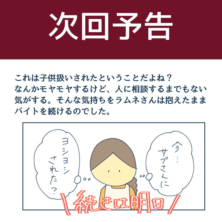 バイト先の人が〇〇をしていた2【稲漫画】 オリジナル漫画 2024年7月24日 ▼前回のお話 バイト先の人が〇〇をしていた1【稲漫画】 新しく居酒屋のバイトを始めた主人公ラムネさん。最初は働きやすいと喜んでいた職場でしたが、とんでもない事が発覚…。これはフォロワー様に実際に起きた恐怖体験です。©稲 ▼次の話 バイト先の人が〇〇をしていた3【稲漫画】 新しく居酒屋のバイトを始めた主人公ラムネさん。最初は働きやすいと喜んでいた職場でしたが、とんでもない事が発覚…。これはフォロワー様に実際に起きた恐怖体験です。©稲 稲さんの連載一覧はこちら! 毎日更新!サラリーウーマン稲のエッセイ漫画 毎日更新!サラリーウーマン稲のエッセイ漫画 こちらのLovely漫画もおすすめ♡ 職場の優しい常連さんが出禁になった話1【稲漫画】 優しい声掛けをしてくれるバイト先の常連さんの話©稲 ストーカーからの電話1【稲漫画】 ストーカーからの電話。恐怖におびえていたら…©稲 私の飲み物に何を入れたの?1【稲漫画】 フォロワーさんが海外旅行に行った時の話©稲 ライター 稲 エッセイ漫画を描くサラリーウーマン!Instagram【@inasan_mainichi】 目次Related article / 関連記事 オリジナル漫画 メンヘラ彼氏にサヨナラ【Lovely漫画】 ©みんみ 2022年3月29日 オリジナル漫画 年下イケメン彼氏に翻弄されるオンナの毎日#3【Lovely漫画】 ©みんみ 2022年3月29日 オリジナル漫画 2人暮らしのゆる家事日記~気まぐれ旦那の献立作りの巻き~後編【Lovely漫画】 ©みんみ 2022年3月29日 オリジナル漫画 年下イケメン彼氏に翻弄されるオンナの毎日#1【Lovely漫画】 ©みんみ「初めての○○の話 前編」 2022年3月29日 オリジナル漫画 年下イケメン彼氏に翻弄されるオンナの毎日#2【Lovely漫画】 ©みんみ「初めての○○の話 後編」 2022年3月29日 オリジナル漫画 よかったらシェアしてね! URLをコピーしました! URLをコピーしました! バイト先の人が〇〇をしていた1【稲漫画】 しまむらのラグが大人気!インテリアがおしゃれに◎【2024】