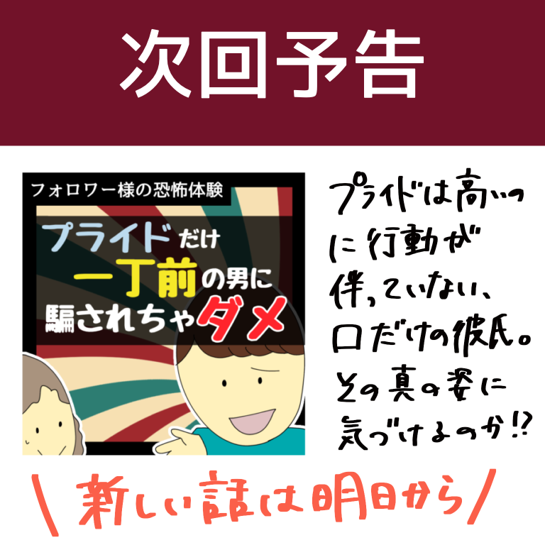 バイト先の人が〇〇をしていた12【稲漫画】 オリジナル漫画 2024年8月5日 ▼前回のお話 バイト先の人が〇〇をしていた11【稲漫画】 新しく居酒屋のバイトを始めた主人公ラムネさん。最初は働きやすいと喜んでいた職場でしたが、とんでもない事が発覚…。これはフォロワー様に実際に起きた恐怖体験です。©稲 ▼新しいお話はこちら! プライドだけ一丁前の男に騙されちゃダメ1【稲漫画】 主人公トマトさんにできた初彼氏。最初は意識が高くてカッコイイ人だと思っていたが、プライドだけ一丁前の口だけ男だった…?!©稲 稲さんの連載一覧はこちら! 毎日更新!サラリーウーマン稲のエッセイ漫画 毎日更新!サラリーウーマン稲のエッセイ漫画 こちらのLovely漫画もおすすめ♡ 優しそうなお爺さんが怖かったはなし1【稲漫画】 小学6年生が体験した恐怖の話!©稲 手口が巧妙で騙されそうになったはなし1【稲漫画】 バイト帰りにおこった恐怖体験!©稲 ショッピングモールの覆面調査不審者のはなし1【稲漫画】 やや謎が残る不審者の恐怖体験!©稲 ライター 稲 エッセイ漫画を描くサラリーウーマン!Instagram【@inasan_mainichi】 目次Related article / 関連記事 オリジナル漫画 メンヘラ彼氏にサヨナラ【Lovely漫画】 ©みんみ 2022年3月29日 オリジナル漫画 年下イケメン彼氏に翻弄されるオンナの毎日#3【Lovely漫画】 ©みんみ 2022年3月29日 オリジナル漫画 2人暮らしのゆる家事日記~気まぐれ旦那の献立作りの巻き~後編【Lovely漫画】 ©みんみ 2022年3月29日 オリジナル漫画 年下イケメン彼氏に翻弄されるオンナの毎日#1【Lovely漫画】 ©みんみ「初めての○○の話 前編」 2022年3月29日 オリジナル漫画 年下イケメン彼氏に翻弄されるオンナの毎日#2【Lovely漫画】 ©みんみ「初めての○○の話 後編」 2022年3月29日 オリジナル漫画 よかったらシェアしてね! URLをコピーしました! URLをコピーしました! バイト先の人が〇〇をしていた11【稲漫画】 卑屈な人の性格と心理!卑屈な性格を直すには?