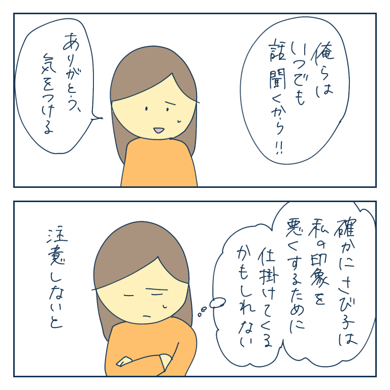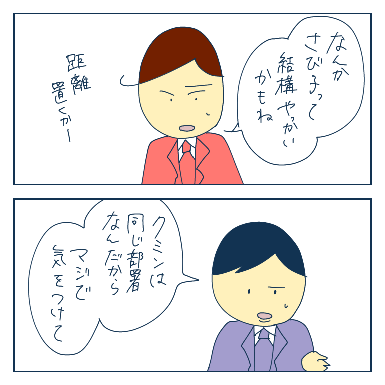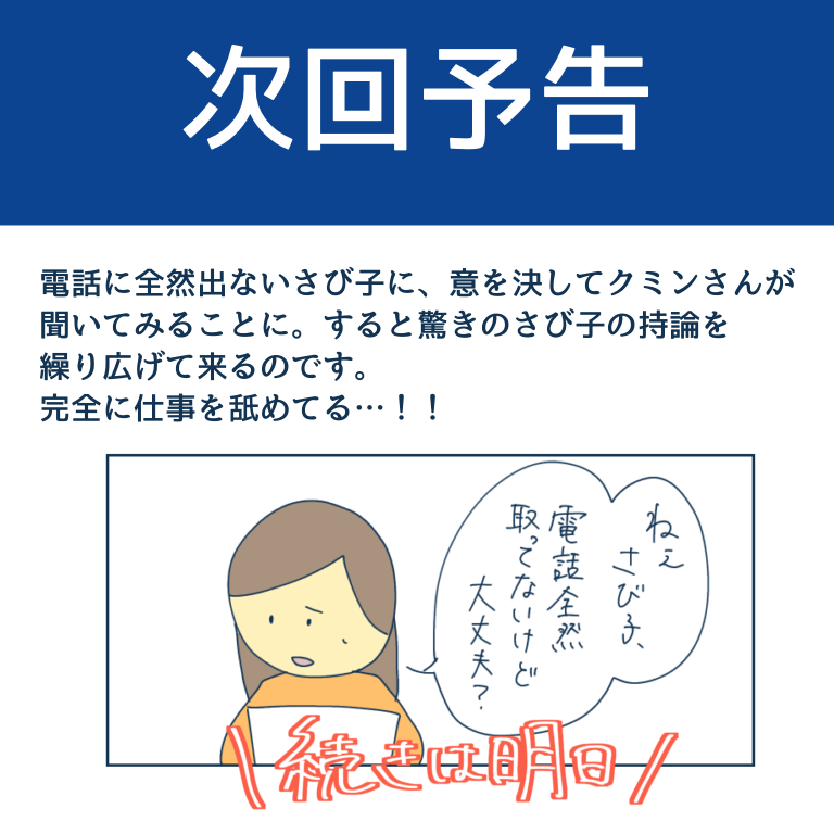 ヤベェ同期に困ってます!!19【稲漫画】 オリジナル漫画 2024年9月30日 ▼前回のお話 ヤベェ同期に困ってます!!18【稲漫画】 ぶっ飛んだ同期が大暴走…!仕事を真面目にやる気はゼロ?人間性もヤバすぎて、職場はいつも振り回されっぱなし…。今回は、そんなトラブルメーカーに、みんなが頭を悩ませながらも戦う物語。©稲 ▼次の話 ヤベェ同期に困ってます!!20【稲漫画】 ぶっ飛んだ同期が大暴走…!仕事を真面目にやる気はゼロ?人間性もヤバすぎて、職場はいつも振り回されっぱなし…。今回は、そんなトラブルメーカーに、みんなが頭を悩ませながらも戦う物語。©稲 稲さんの連載一覧はこちら! 毎日更新!サラリーウーマン稲のエッセイ漫画 毎日更新!サラリーウーマン稲のエッセイ漫画 こちらのLovely漫画もおすすめ♡ 手口が巧妙で騙されそうになったはなし1【稲漫画】 バイト帰りにおこった恐怖体験!©稲 私に何をしようとしたの?というはなし1【稲漫画】 「どういうこと?」と謎の残る恐怖体験!©稲 ネットで知り合った人にお金を要求されたはなし1【稲漫画】 出会いが欲しかった社会人なりたての頃の恐怖体験!©稲 ライター 稲 エッセイ漫画を描くサラリーウーマン!Instagram【@inasan_mainichi】 目次Related article / 関連記事 オリジナル漫画 メンヘラ彼氏にサヨナラ【Lovely漫画】 ©みんみ 2022年3月29日 オリジナル漫画 年下イケメン彼氏に翻弄されるオンナの毎日#3【Lovely漫画】 ©みんみ 2022年3月29日 オリジナル漫画 2人暮らしのゆる家事日記~気まぐれ旦那の献立作りの巻き~後編【Lovely漫画】 ©みんみ 2022年3月29日 オリジナル漫画 年下イケメン彼氏に翻弄されるオンナの毎日#1【Lovely漫画】 ©みんみ「初めての○○の話 前編」 2022年3月29日 オリジナル漫画 年下イケメン彼氏に翻弄されるオンナの毎日#2【Lovely漫画】 ©みんみ「初めての○○の話 後編」 2022年3月29日 オリジナル漫画 よかったらシェアしてね! URLをコピーしました! URLをコピーしました! ヤベェ同期に困ってます!!16【稲漫画】 姫カットとは?可愛い姫カットアレンジを長さ別にご紹介!