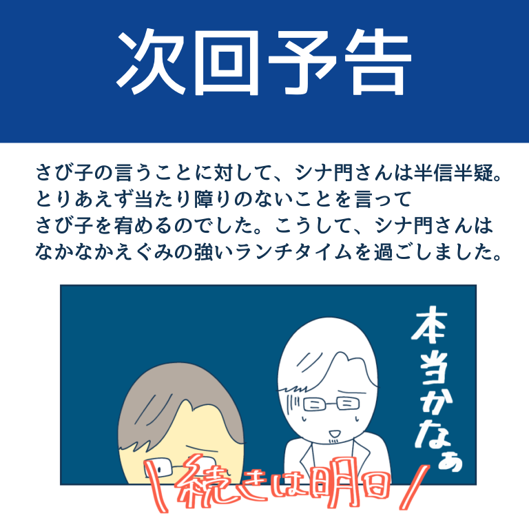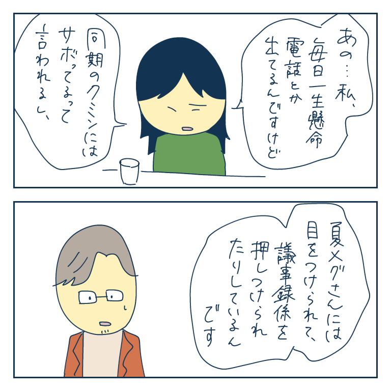 ヤベェ同期に困ってます!!26【稲漫画】 オリジナル漫画 2024年10月7日 ▼前回のお話 ヤベェ同期に困ってます!!25【稲漫画】 ぶっ飛んだ同期が大暴走…!仕事を真面目にやる気はゼロ?人間性もヤバすぎて、職場はいつも振り回されっぱなし…。今回は、そんなトラブルメーカーに、みんなが頭を悩ませながらも戦う物語。©稲 ▼次の話 ヤベェ同期に困ってます!!27【稲漫画】 ぶっ飛んだ同期が大暴走…!仕事を真面目にやる気はゼロ?人間性もヤバすぎて、職場はいつも振り回されっぱなし…。今回は、そんなトラブルメーカーに、みんなが頭を悩ませながらも戦う物語。©稲 稲さんの連載一覧はこちら! 毎日更新!サラリーウーマン稲のエッセイ漫画 毎日更新!サラリーウーマン稲のエッセイ漫画 こちらのLovely漫画もおすすめ♡ 悪口ばかりの友人にうんざりした話1【稲漫画】 友人から「久しぶりに同じ中学だった◯◯と会わない?」という連絡が来る。しかし、その子は息をするように悪口を吐く子だった。「性格がかなり柔なくなってたの!」というので気になって会うことにするが・・・?稲 なんでもタダでやってくれるのが友達でしょ?1【稲漫画】 転職先で出会った友人…。最初は気さくで明るい人だと思っていたけど、とんでもない人だった!?これは実際にあったフォロワー様の恐怖体験©稲 同居の義母が私に生命保険をかけていた1【稲漫画】 同居をすることになった義母と義父はとんでもない人たちで……これはフォロワー様の恐怖の実体験©稲 ライター 稲 エッセイ漫画を描くサラリーウーマン!Instagram【@inasan_mainichi】 目次Related article / 関連記事 オリジナル漫画 メンヘラ彼氏にサヨナラ【Lovely漫画】 ©みんみ 2022年3月29日 オリジナル漫画 年下イケメン彼氏に翻弄されるオンナの毎日#3【Lovely漫画】 ©みんみ 2022年3月29日 オリジナル漫画 2人暮らしのゆる家事日記~気まぐれ旦那の献立作りの巻き~後編【Lovely漫画】 ©みんみ 2022年3月29日 オリジナル漫画 年下イケメン彼氏に翻弄されるオンナの毎日#1【Lovely漫画】 ©みんみ「初めての○○の話 前編」 2022年3月29日 オリジナル漫画 年下イケメン彼氏に翻弄されるオンナの毎日#2【Lovely漫画】 ©みんみ「初めての○○の話 後編」 2022年3月29日 オリジナル漫画 よかったらシェアしてね! URLをコピーしました! URLをコピーしました! ヤベェ同期に困ってます!!23【稲漫画】 前髪の切り方!美容院いらずで可愛い♡11種類の簡単セルフカット術