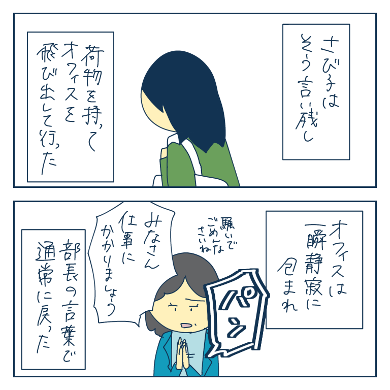 ヤベェ同期に困ってます!!57【稲漫画】 オリジナル漫画 2024年11月7日 ▼前回のお話 ヤベェ同期に困ってます!!56【稲漫画】 ぶっ飛んだ同期が大暴走…!仕事を真面目にやる気はゼロ?人間性もヤバすぎて、職場はいつも振り回されっぱなし…。今回は、そんなトラブルメーカーに、みんなが頭を悩ませながらも戦う物語。©稲 ▼次の話 ヤベェ同期に困ってます!!58【稲漫画】 ぶっ飛んだ同期が大暴走…!仕事を真面目にやる気はゼロ?人間性もヤバすぎて、職場はいつも振り回されっぱなし…。今回は、そんなトラブルメーカーに、みんなが頭を悩ませながらも戦う物語。©稲 稲さんの連載一覧はこちら! 毎日更新!サラリーウーマン稲のエッセイ漫画 毎日更新!サラリーウーマン稲のエッセイ漫画 こちらのLovely漫画もおすすめ♡ ストーカーからの電話1【稲漫画】 ストーカーからの電話。恐怖におびえていたら…©稲 とんでもねェマタハラと戦った話1【稲漫画】 自分がマタハラを受けることになるとは思わなかった。これはそんなマタハラと戦った記録。©稲 母乳じゃないなんてかわいそうと言われた話1【稲漫画】 お正月、夫の実家へ行くことになったフォロワー様。たくさんの親戚が集まっていました。しかし、そこで育児について偏った考えをぶつけられてしまいます。泣きそうになるフォロワー様でしたが…。©稲 ライター 稲 エッセイ漫画を描くサラリーウーマン!Instagram【@inasan_mainichi】 目次Related article / 関連記事 オリジナル漫画 メンヘラ彼氏にサヨナラ【Lovely漫画】 ©みんみ 2022年3月29日 オリジナル漫画 年下イケメン彼氏に翻弄されるオンナの毎日#3【Lovely漫画】 ©みんみ 2022年3月29日 オリジナル漫画 2人暮らしのゆる家事日記~気まぐれ旦那の献立作りの巻き~後編【Lovely漫画】 ©みんみ 2022年3月29日 オリジナル漫画 年下イケメン彼氏に翻弄されるオンナの毎日#1【Lovely漫画】 ©みんみ「初めての○○の話 前編」 2022年3月29日 オリジナル漫画 年下イケメン彼氏に翻弄されるオンナの毎日#2【Lovely漫画】 ©みんみ「初めての○○の話 後編」 2022年3月29日 オリジナル漫画 よかったらシェアしてね! URLをコピーしました! URLをコピーしました! ヤベェ同期に困ってます!!56【稲漫画】 フェイスローラーの効果は?正しい使い方を知って小顔になろう!