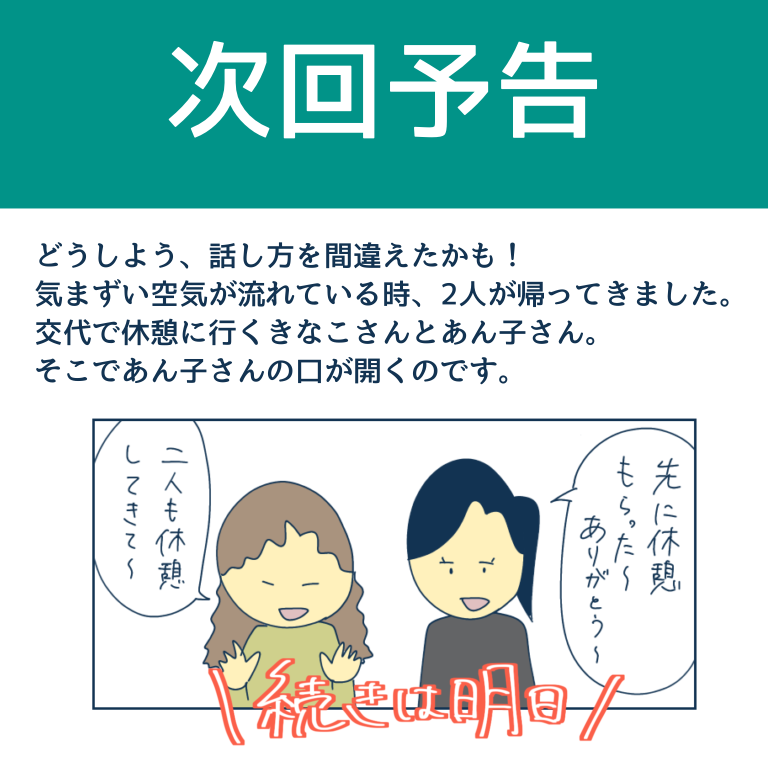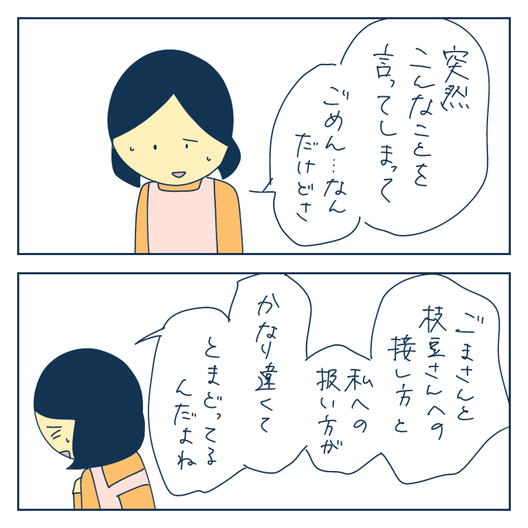 私への扱いだけ雑なママ友22【稲漫画】 オリジナル漫画 2024年12月16日 ▼前回のお話 私への扱いだけ雑なママ友21【稲漫画】 すごく素敵なママ友ができた主人公。いい人なのに、なぜか私だけ雑に扱われている気がする…。気のせいなの?気のせいじゃないの?これは、ママ友とのそんな絶妙なトラブルに悩まされたお話。©稲 ▼次の話 私への扱いだけ雑なママ友23【稲漫画】 すごく素敵なママ友ができた主人公。いい人なのに、なぜか私だけ雑に扱われている気がする…。気のせいなの?気のせいじゃないの?これは、ママ友とのそんな絶妙なトラブルに悩まされたお話。©稲 稲さんの連載一覧はこちら! 毎日更新!サラリーウーマン稲のエッセイ漫画 毎日更新!サラリーウーマン稲のエッセイ漫画 こちらのLovely漫画もおすすめ♡ 私の労力をタダだと思っている友人1【稲漫画】 フォロワーさんが体験した恐怖体験です…©稲 なんでもタダでやってくれるのが友達でしょ?1【稲漫画】 転職先で出会った友人…。最初は気さくで明るい人だと思っていたけど、とんでもない人だった!?これは実際にあったフォロワー様の恐怖体験©稲 義両親が私を見下してくる1【稲漫画】 優しく真面目な彼からのプロポーズに、迷うことなくOKした主人公。後日、彼の両親に挨拶をすることになりました。第一印象は優しい両親でしたが、次第に言動に違和感を感じるように…。今回は、以前配信した「母乳じゃないなんてかわいそうと言われた話」のあられさんが主人公のお話です。©稲 ライター 稲 エッセイ漫画を描くサラリーウーマン!Instagram【@inasan_mainichi】 目次Related article / 関連記事 オリジナル漫画 メンヘラ彼氏にサヨナラ【Lovely漫画】 ©みんみ 2022年3月29日 オリジナル漫画 年下イケメン彼氏に翻弄されるオンナの毎日#3【Lovely漫画】 ©みんみ 2022年3月29日 オリジナル漫画 2人暮らしのゆる家事日記~気まぐれ旦那の献立作りの巻き~後編【Lovely漫画】 ©みんみ 2022年3月29日 オリジナル漫画 年下イケメン彼氏に翻弄されるオンナの毎日#1【Lovely漫画】 ©みんみ「初めての○○の話 前編」 2022年3月29日 オリジナル漫画 年下イケメン彼氏に翻弄されるオンナの毎日#2【Lovely漫画】 ©みんみ「初めての○○の話 後編」 2022年3月29日 オリジナル漫画 よかったらシェアしてね! URLをコピーしました! URLをコピーしました! 私への扱いだけ雑なママ友21【稲漫画】 好き避けが職場で起こる理由と対処法とは?【社内恋愛】
