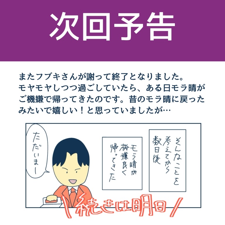 モラハラ夫は改心するのか17【稲漫画】 オリジナル漫画 2025年1月16日 ▼前回のお話 モラハラ夫は改心するのか16【稲漫画】 自分の思い通りにならないとすぐにキレるモラハラ夫。事あるごとに支離滅裂な理由で責められる日々に我慢の限界が…。果たしてモラハラ夫は改心するのか?©稲 ▼次の話 モラハラ夫は改心するのか18【稲漫画】 自分の思い通りにならないとすぐにキレるモラハラ夫。事あるごとに支離滅裂な理由で責められる日々に我慢の限界が…。果たしてモラハラ夫は改心するのか?©稲 稲さんの連載一覧はこちら! 毎日更新!サラリーウーマン稲のエッセイ漫画 毎日更新!サラリーウーマン稲のエッセイ漫画 こちらのLovely漫画もおすすめ♡ 私の家の扉を叩くのは誰1【稲漫画】 フォロワーさんが学生時代、一人暮らしをしていた時の恐怖体験とは…?©稲 ヤバい先輩から逃げねば!会社のパワハラ体験談1【稲漫画】 社会人になりたてに先輩から受けたパワハラ体験談©稲 ガソリンスタンドで不安をあおられた話1【稲漫画】 いつも行っているところとは別のガソリンスタンドで体験した胸糞悪い体験談©稲 ライター 稲 エッセイ漫画を描くサラリーウーマン!Instagram【@inasan_mainichi】 目次Related article / 関連記事 オリジナル漫画 メンヘラ彼氏にサヨナラ【Lovely漫画】 ©みんみ 2022年3月29日 オリジナル漫画 年下イケメン彼氏に翻弄されるオンナの毎日#3【Lovely漫画】 ©みんみ 2022年3月29日 オリジナル漫画 2人暮らしのゆる家事日記~気まぐれ旦那の献立作りの巻き~後編【Lovely漫画】 ©みんみ 2022年3月29日 オリジナル漫画 年下イケメン彼氏に翻弄されるオンナの毎日#1【Lovely漫画】 ©みんみ「初めての○○の話 前編」 2022年3月29日 オリジナル漫画 年下イケメン彼氏に翻弄されるオンナの毎日#2【Lovely漫画】 ©みんみ「初めての○○の話 後編」 2022年3月29日 オリジナル漫画 よかったらシェアしてね! URLをコピーしました! URLをコピーしました! モラハラ夫は改心するのか16【稲漫画】 優柔不断な人の特徴と心理11選!克服方法は?