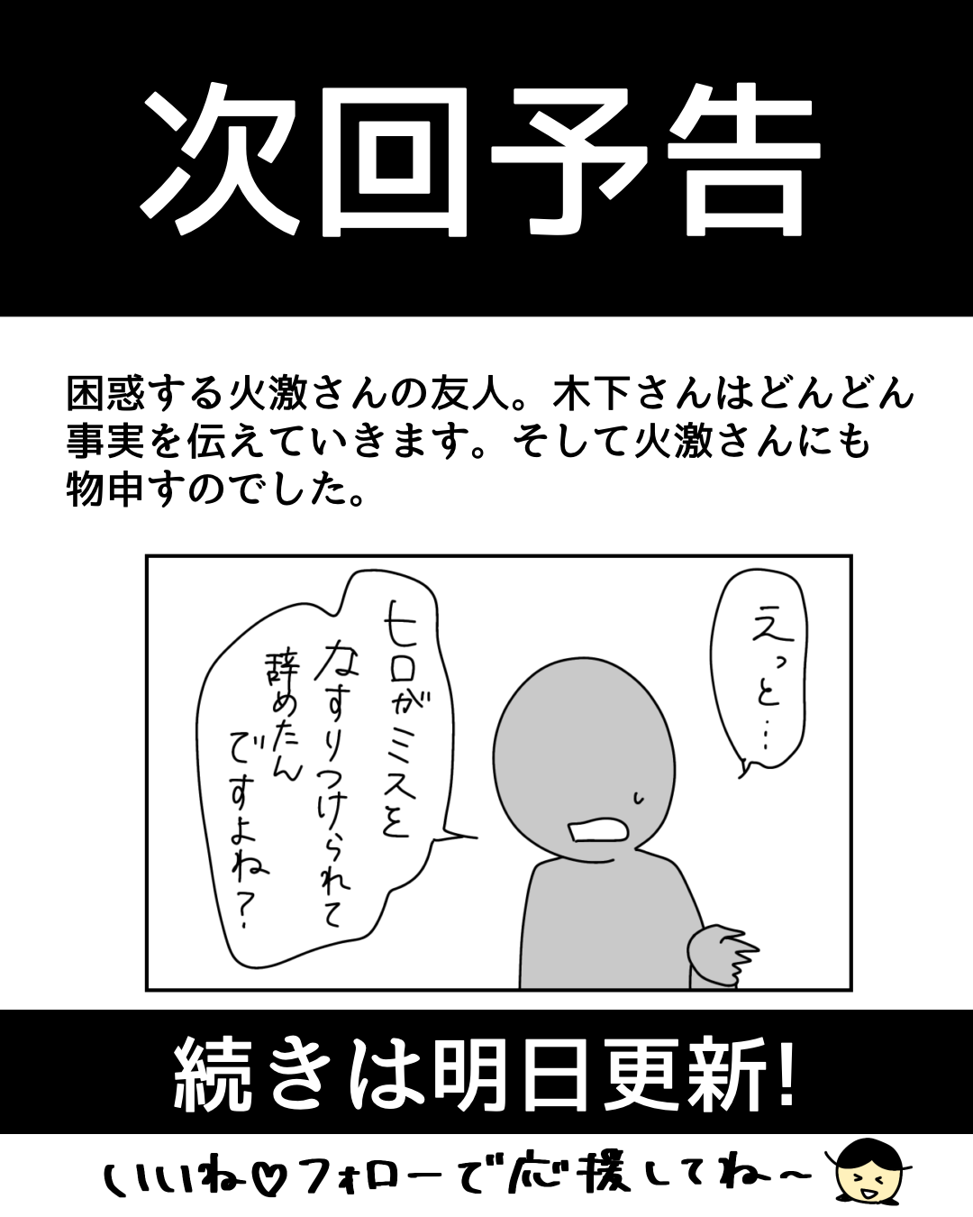 不幸アピールする後輩にウンザリ51【稲漫画】 オリジナル漫画 2025年4月24日 ▼前回のお話 不幸アピールする後輩にウンザリ50【稲漫画】 会社で教育担当者に任命された主人公。しかし、相手は入社して早々から不幸アピールがすごい、クセ強な後輩だった。そんな後輩が次々と起こす事件に頭を悩ませる日々が始まる…!©稲 稲さんの連載一覧はこちら! 毎日更新!サラリーウーマン稲のエッセイ漫画 毎日更新!サラリーウーマン稲のエッセイ漫画 こちらのLovely漫画もおすすめ♡ 恐怖のお姫様ごっこをさせられたはなし1【稲漫画】 小学2年生の夏休みに起きた恐怖体験…!©稲 酔っぱらっていたら知らぬ間に怖かったはなし1【稲漫画】 20代前半、酒に飲まれた時の恐怖体験!©稲 顧問の感情で選手の道が危うくなりかけたはなし1【稲漫画】 国体出場を目指す高校生に起きた恐怖体験!©稲 ライター 稲 エッセイ漫画を描くサラリーウーマン!Instagram【@inasan_mainichi】 目次Related article / 関連記事 オリジナル漫画 メンヘラ彼氏にサヨナラ【Lovely漫画】 ©みんみ 2022年3月29日 オリジナル漫画 年下イケメン彼氏に翻弄されるオンナの毎日#3【Lovely漫画】 ©みんみ 2022年3月29日 オリジナル漫画 2人暮らしのゆる家事日記~気まぐれ旦那の献立作りの巻き~後編【Lovely漫画】 ©みんみ 2022年3月29日 オリジナル漫画 年下イケメン彼氏に翻弄されるオンナの毎日#1【Lovely漫画】 ©みんみ「初めての○○の話 前編」 2022年3月29日 オリジナル漫画 年下イケメン彼氏に翻弄されるオンナの毎日#2【Lovely漫画】 ©みんみ「初めての○○の話 後編」 2022年3月29日 オリジナル漫画 よかったらシェアしてね! URLをコピーしました! URLをコピーしました! 不幸アピールする後輩にウンザリ44【稲漫画】 夫がマッチングアプリをやっていました1【稲漫画】