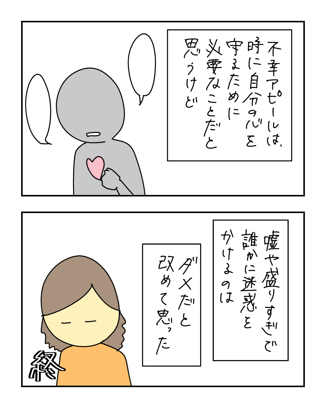 不幸アピールする後輩にウンザリ54【稲漫画】 オリジナル漫画 2025年4月24日 ▼前回のお話 不幸アピールする後輩にウンザリ53【稲漫画】 会社で教育担当者に任命された主人公。しかし、相手は入社して早々から不幸アピールがすごい、クセ強な後輩だった。そんな後輩が次々と起こす事件に頭を悩ませる日々が始まる…!©稲 稲さんの連載一覧はこちら! 毎日更新!サラリーウーマン稲のエッセイ漫画 毎日更新!サラリーウーマン稲のエッセイ漫画 こちらのLovely漫画もおすすめ♡ 大切な時間を失った悲しい話1【稲漫画】 大事な母との大切な時間を失った辛い体験©稲 私じゃない!無実の罪で怒られた話1【稲漫画】 無実の罪を被せられ怒られた後、衝撃的事実が発覚した体験©稲 この彼氏…大丈夫?1【稲漫画】 マッチングアプリで出会った彼氏がとんでもない人だった話©稲 ライター 稲 エッセイ漫画を描くサラリーウーマン!Instagram【@inasan_mainichi】 目次Related article / 関連記事 オリジナル漫画 メンヘラ彼氏にサヨナラ【Lovely漫画】 ©みんみ 2022年3月29日 オリジナル漫画 年下イケメン彼氏に翻弄されるオンナの毎日#3【Lovely漫画】 ©みんみ 2022年3月29日 オリジナル漫画 2人暮らしのゆる家事日記~気まぐれ旦那の献立作りの巻き~後編【Lovely漫画】 ©みんみ 2022年3月29日 オリジナル漫画 年下イケメン彼氏に翻弄されるオンナの毎日#1【Lovely漫画】 ©みんみ「初めての○○の話 前編」 2022年3月29日 オリジナル漫画 年下イケメン彼氏に翻弄されるオンナの毎日#2【Lovely漫画】 ©みんみ「初めての○○の話 後編」 2022年3月29日 オリジナル漫画 よかったらシェアしてね! URLをコピーしました! URLをコピーしました! 不幸アピールする後輩にウンザリ44【稲漫画】 夫がマッチングアプリをやっていました1【稲漫画】