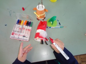 5歳児になると人間や動物の体を書けるようになってきますので色々な動きのあるサンタやトナカイになり楽しいですね♪