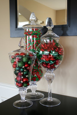 下の写真は、クリスマスカラーのボールなどが、瓶に入っています。