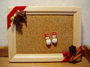 下の写真は、コルクボードにリボンを飾り付けしたものです。